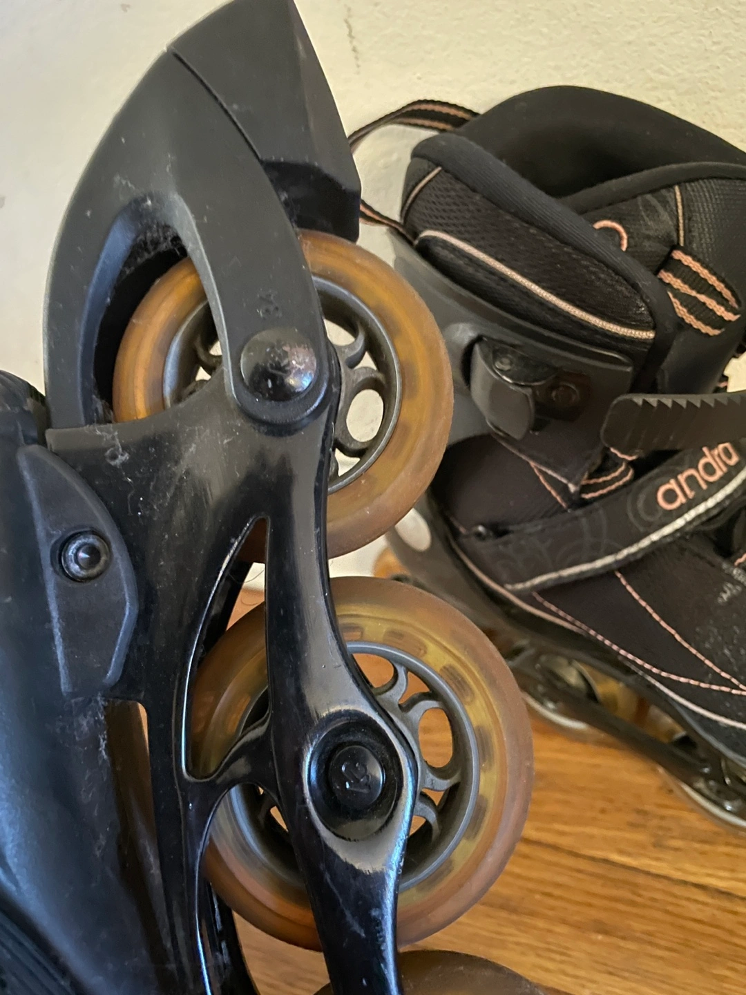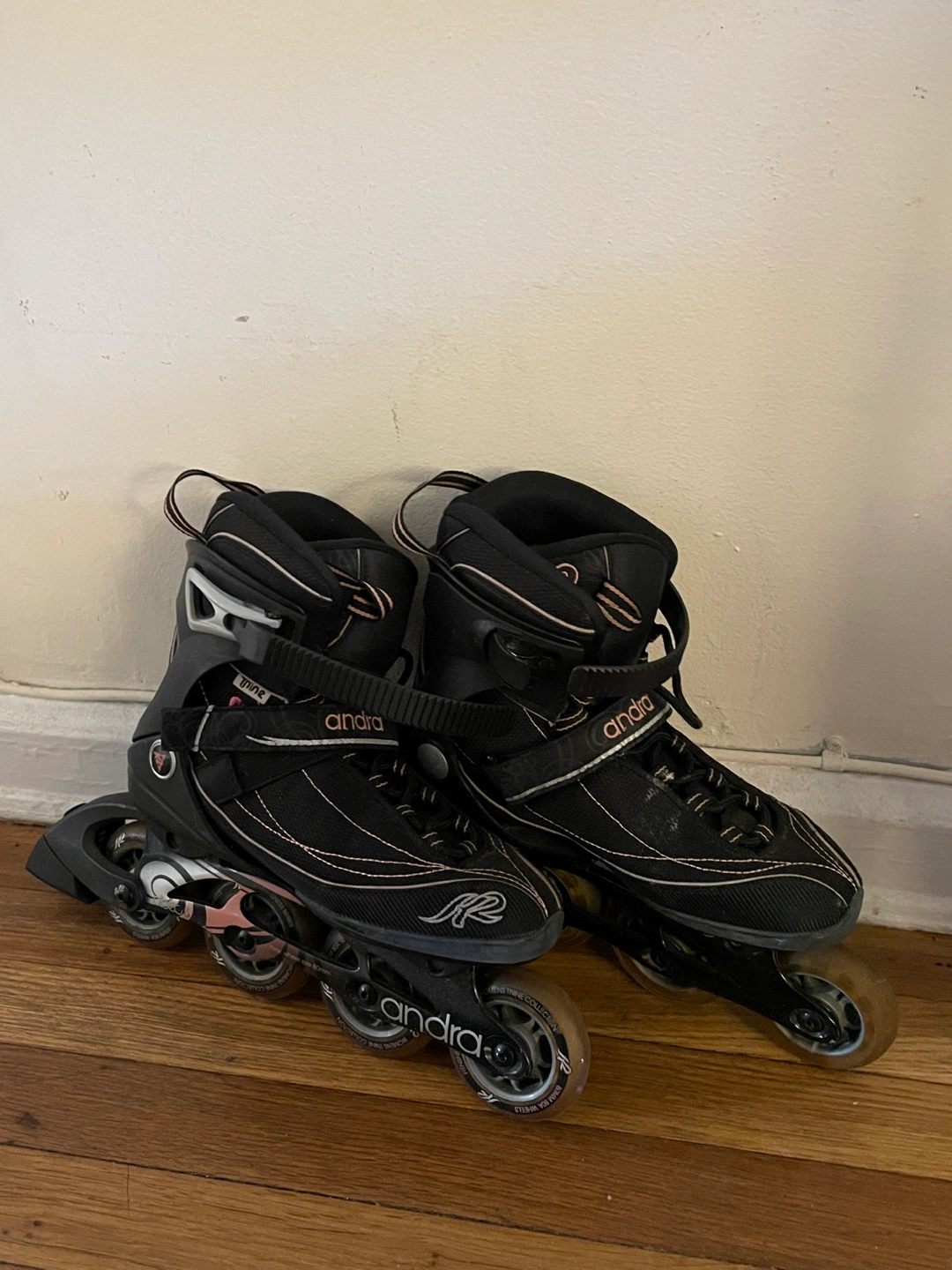 Selling a pair of Andra rollerblades in black and pink accents. They're women's size 8 (US). These are in good condition and ready for some fun!