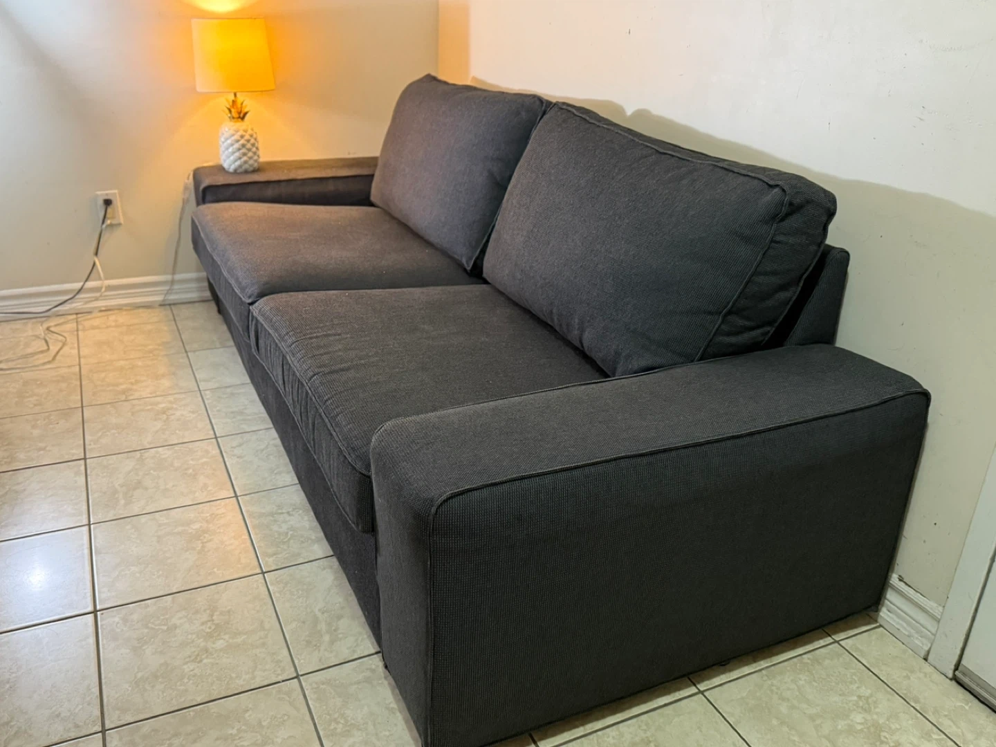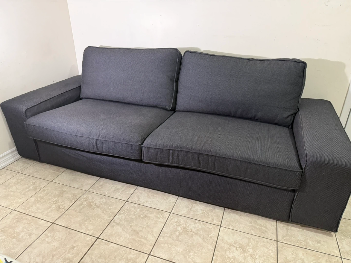 Selling a comfy dark grey Kivik sofa from Ikea. The color is « Tresund anthracite » for reference. It's in great condition and ready for a new home. Perfect for a living room or den! - MOVING SALE by September 2