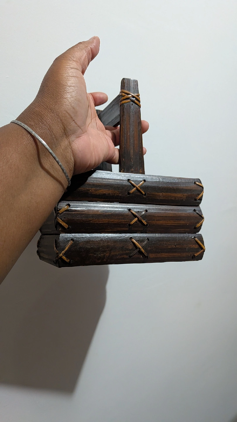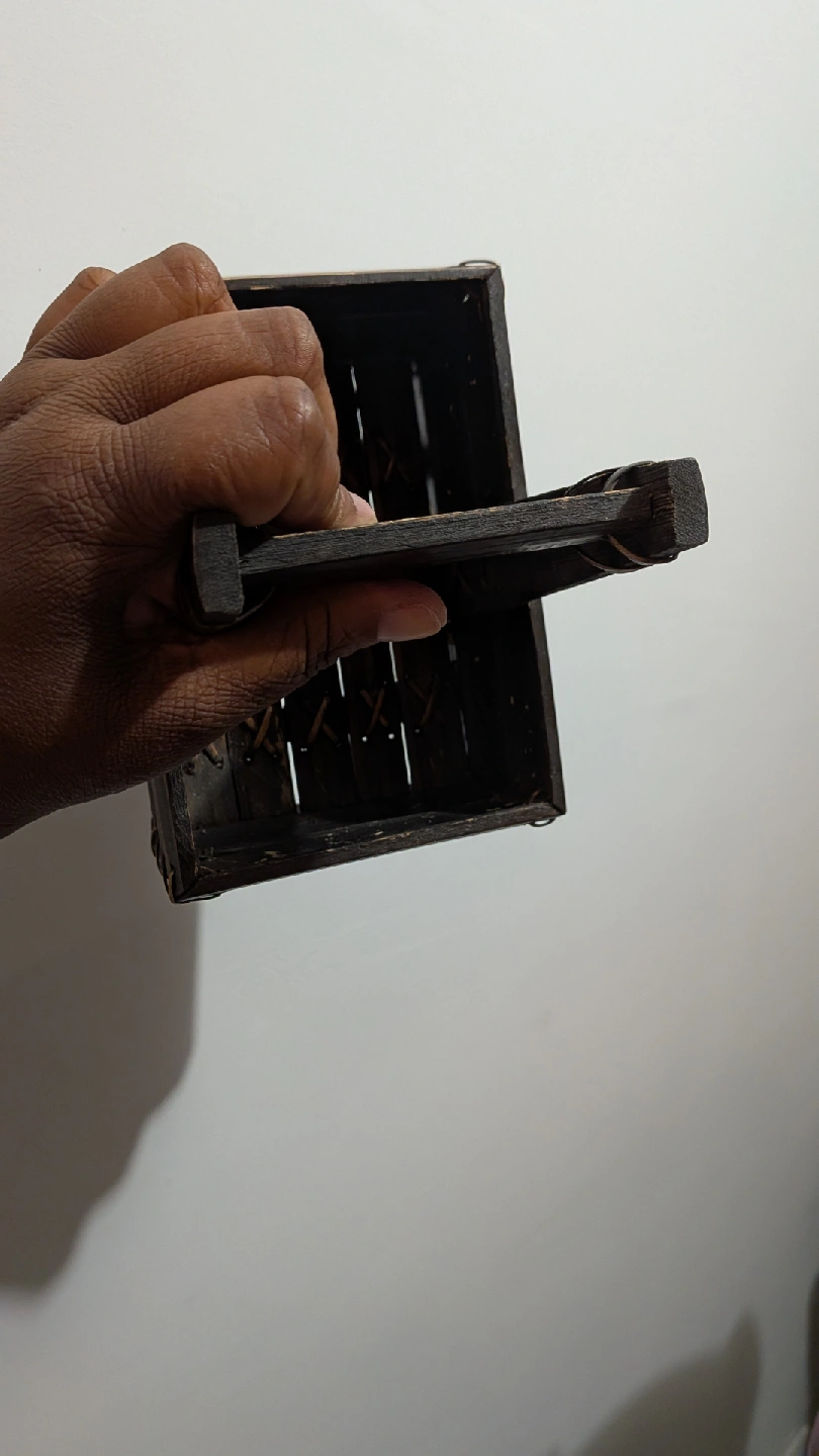 Here's a cute woven wooden basket! It's perfect for storing small items or adding a rustic touch to your decor. It's in great condition and ready for a new home. About 20 years old. FREE!
