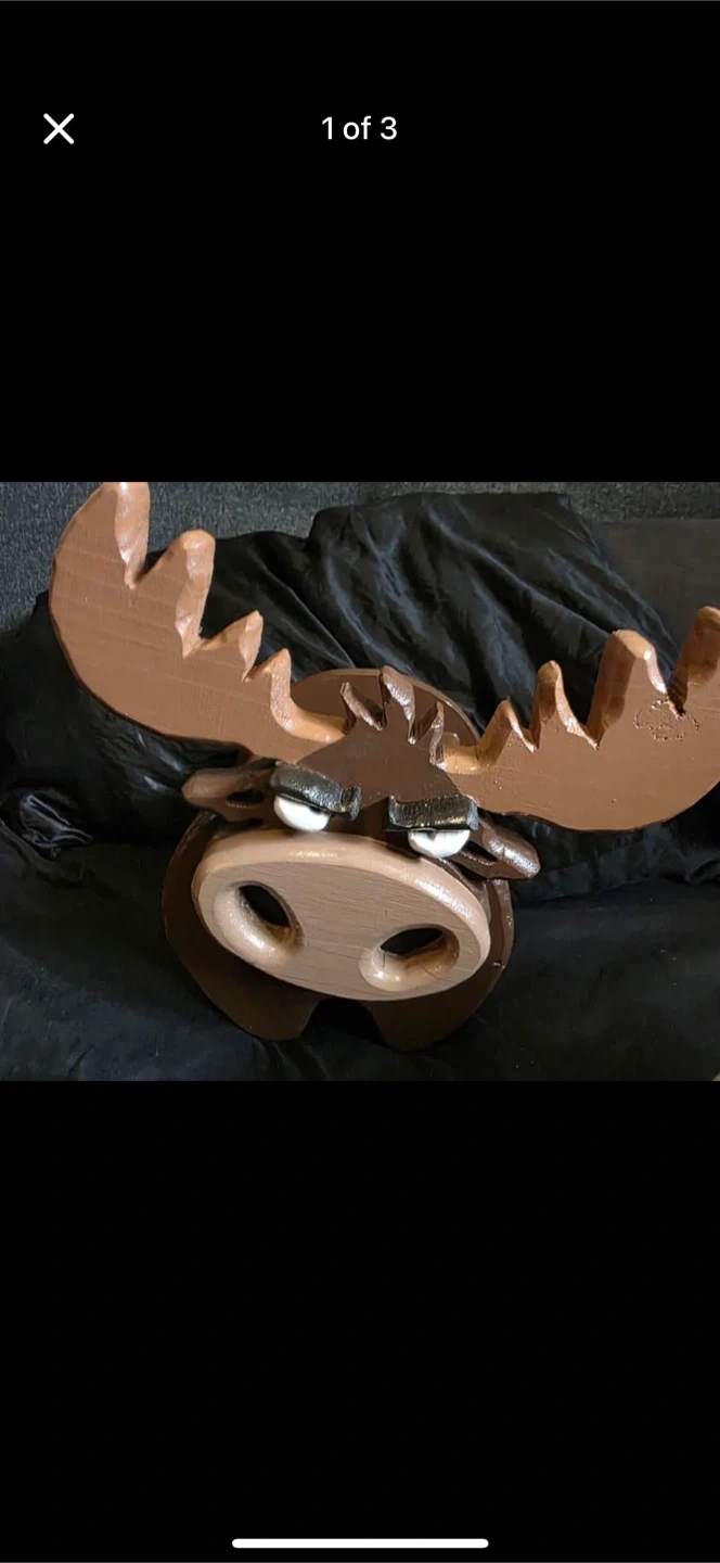 This is a fun piece of wooden moose head decor! It's in great condition and would be perfect for a cabin or rustic-themed room