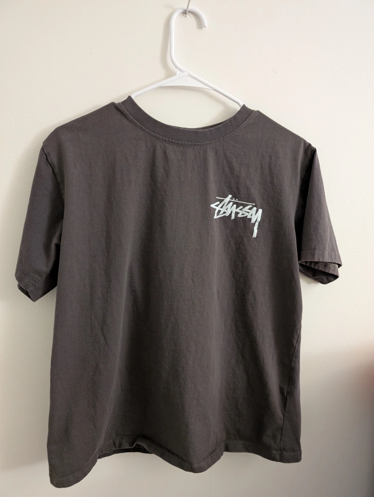 Selling a Stussy Dice Graphic T-Shirt. This tee features the iconic Stussy logo on the front and a cool dice graphic on the back. It's a stylish and comfortable piece for everyday wear! 100% Cotton Can fit M and L.