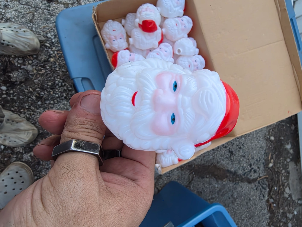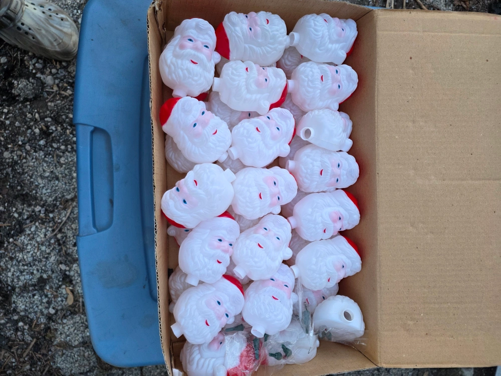 Selling vintage Santa string light heads and string lights. They are in good condition and ready to be used for the holidays! 3 boxes and light stakes.