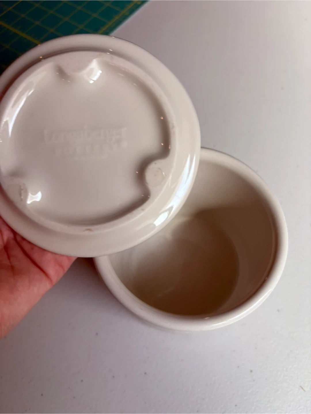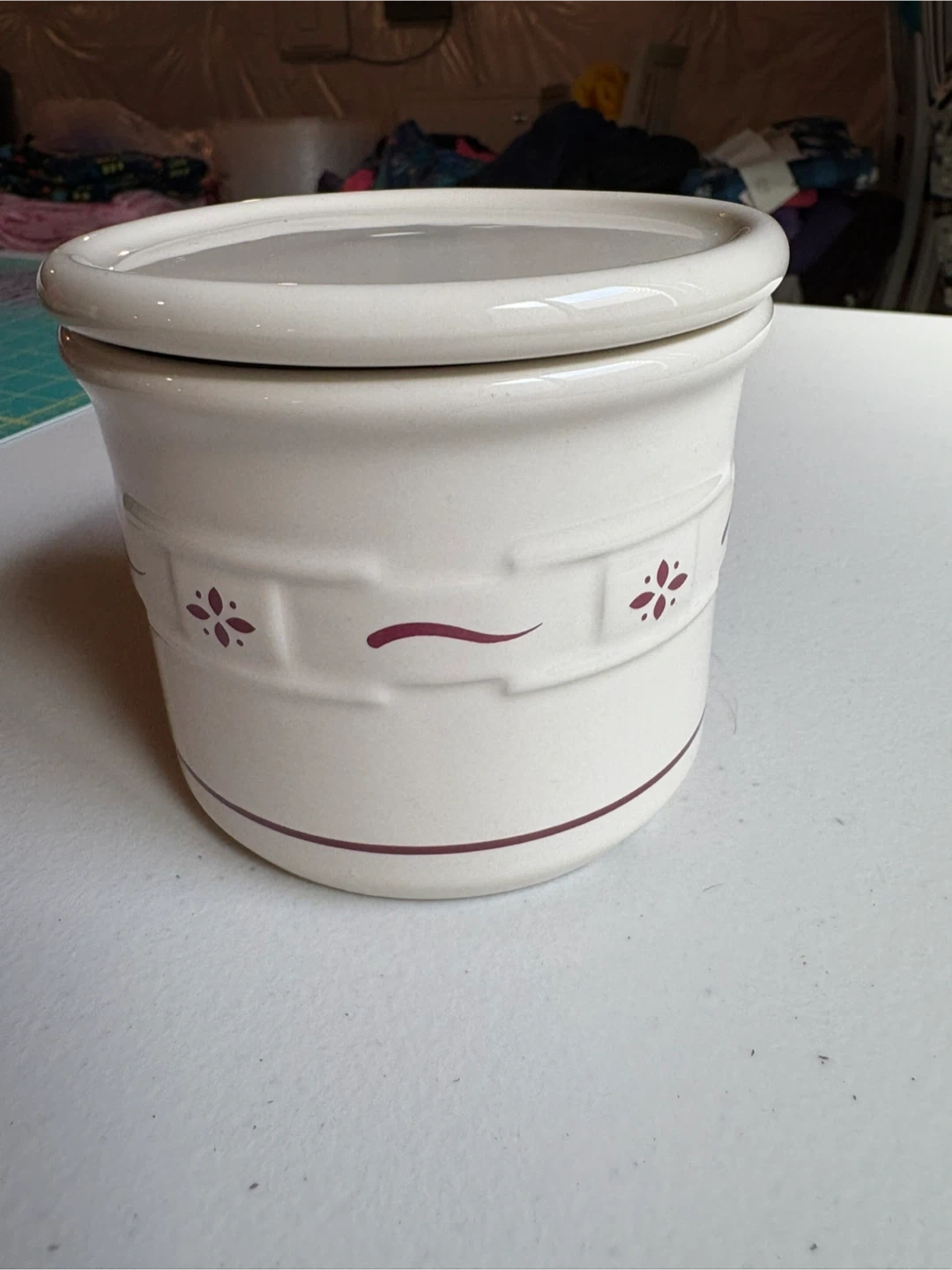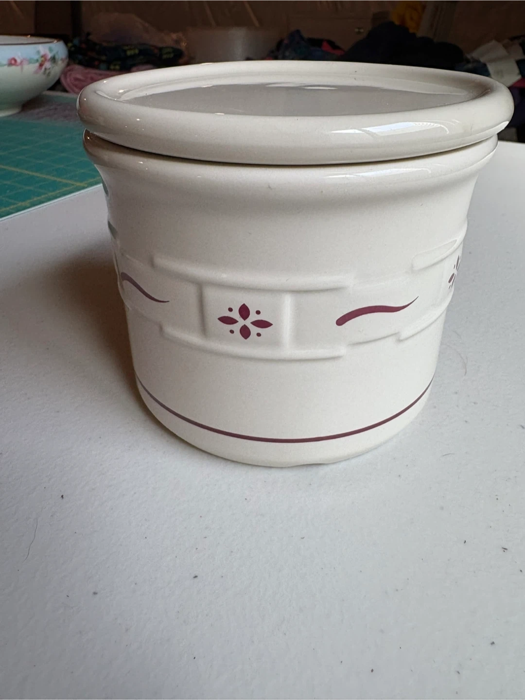 Longaberger Pottery Red Woven Tradition Pattern 1 Pint Crock & Lid