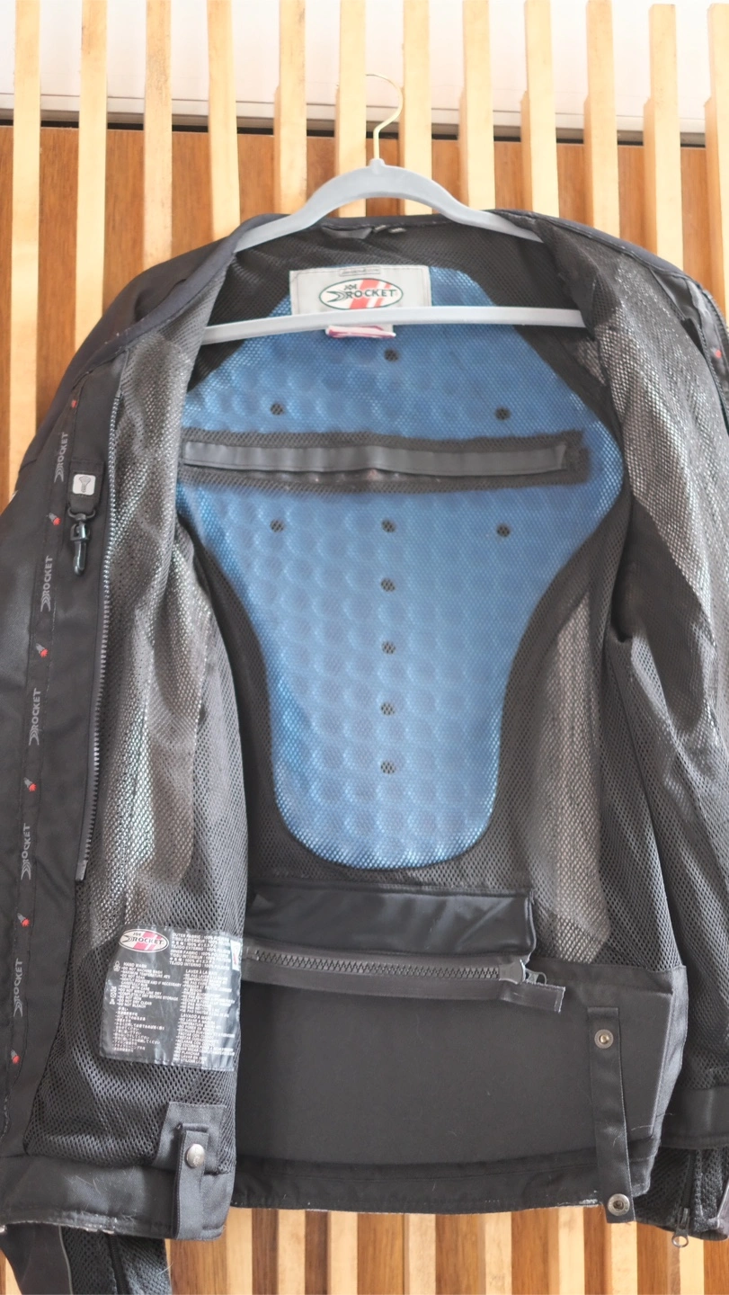 • Built-in back protector, elbow guards + mesh lining for ventilation