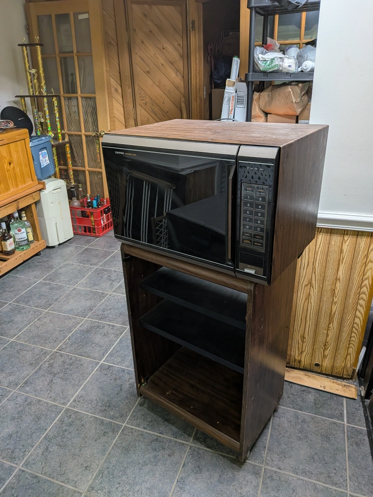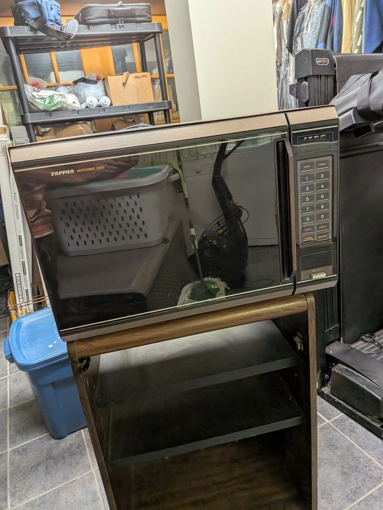 Selling a Tappan microwave oven. It's in good condition and ready for a new home! It comes with a cabinet stand. Works great.