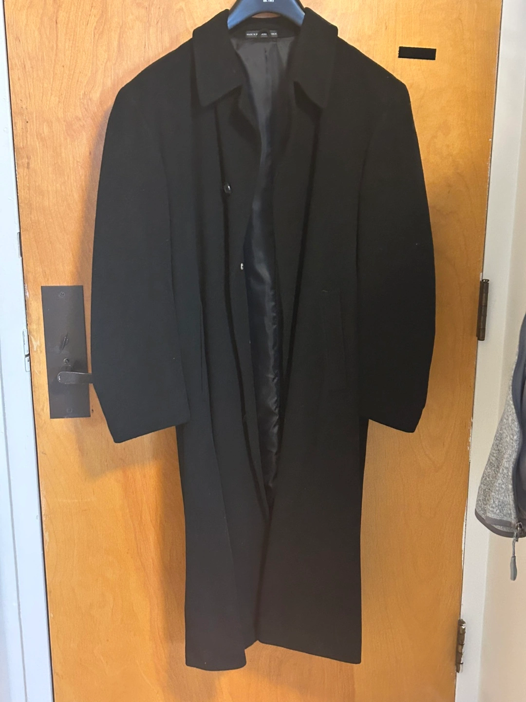 Selling a new no tags Jones New York black %100 cashmere overcoat in size 42 R , 51 inches from collar to the bottom, perfect for the colder months. Made in Dominican Republic