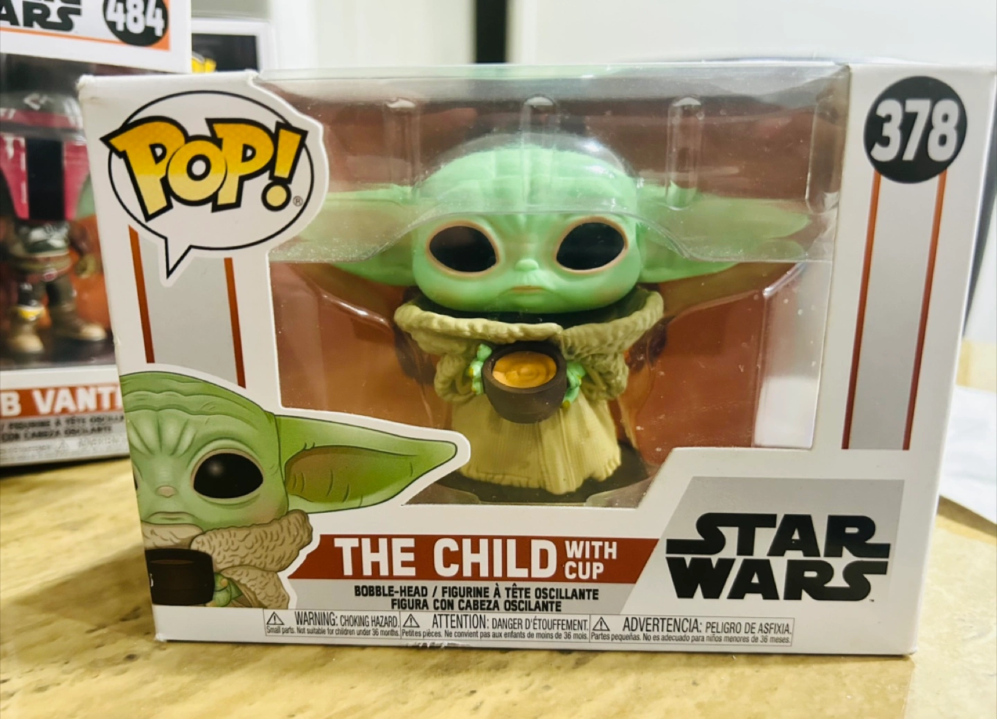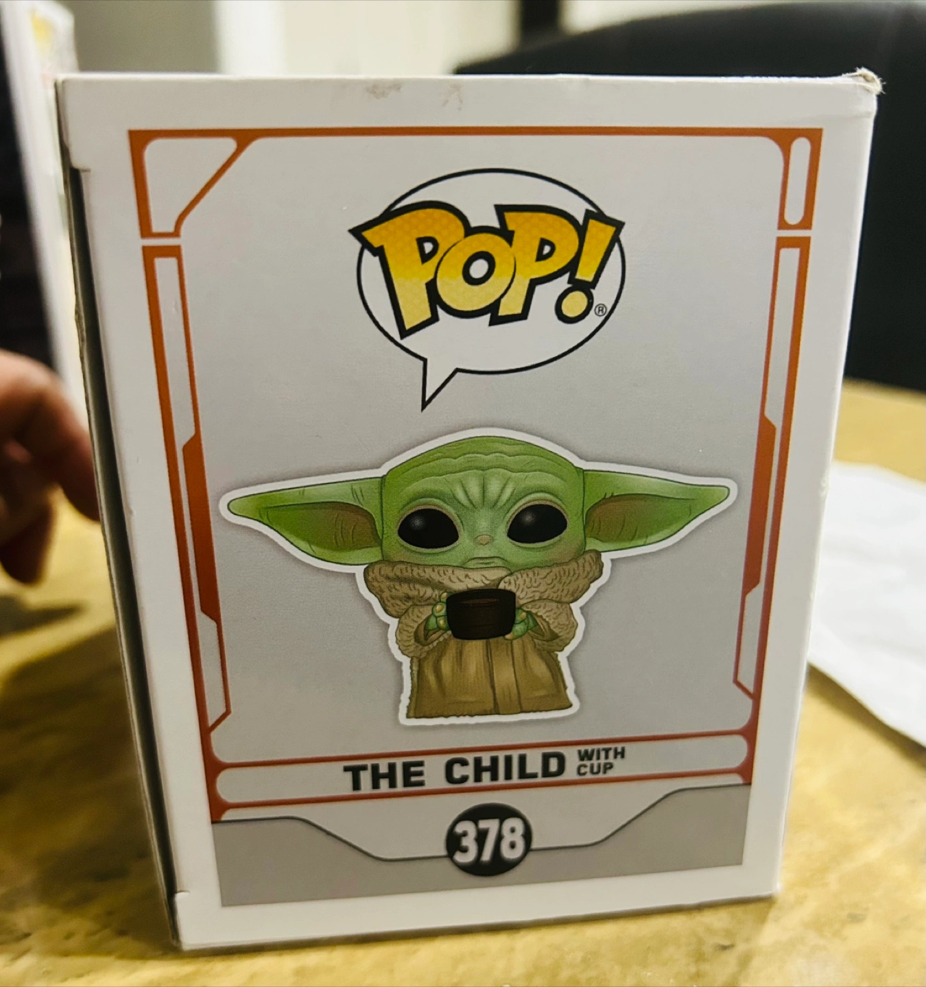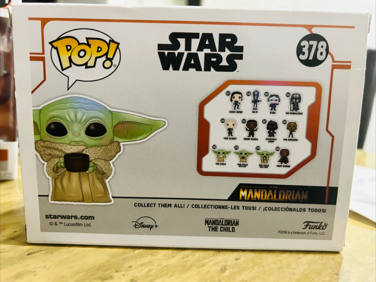Selling a Funko Pop! from Star Wars The Mandalorian series. This is The Child (Grogu/Baby Yoda) with Cup, figure #378. It comes in the original box