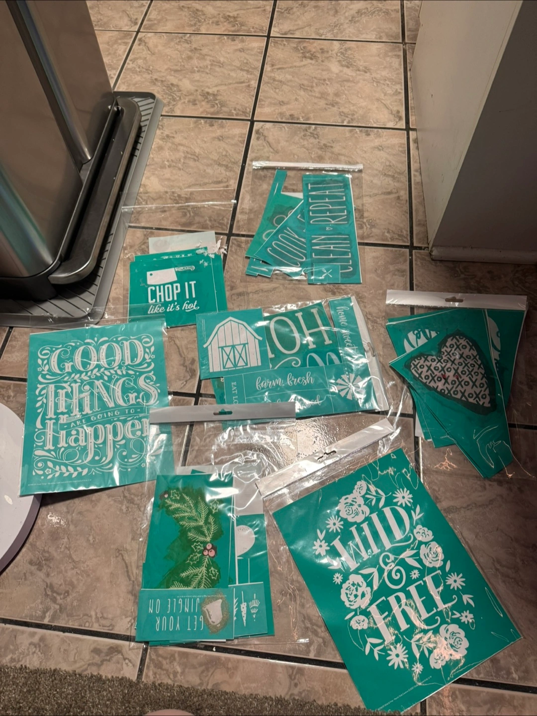 10Message for prices or bundle price! A big bundle of Chalk Couture stencils ready for your next DIY project! There are a variety of designs, from seasonal to everyday sayings. Perfect for adding a personal touch to your home decor or creating unique gifts