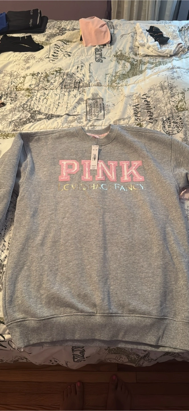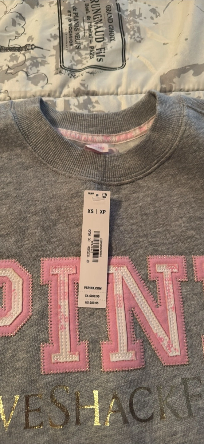 Selling a brand new PINK Love Shack Fancy sweatshirt in size XS! It's a super cute gray color with pink and gold lettering. Originally bought for $90
