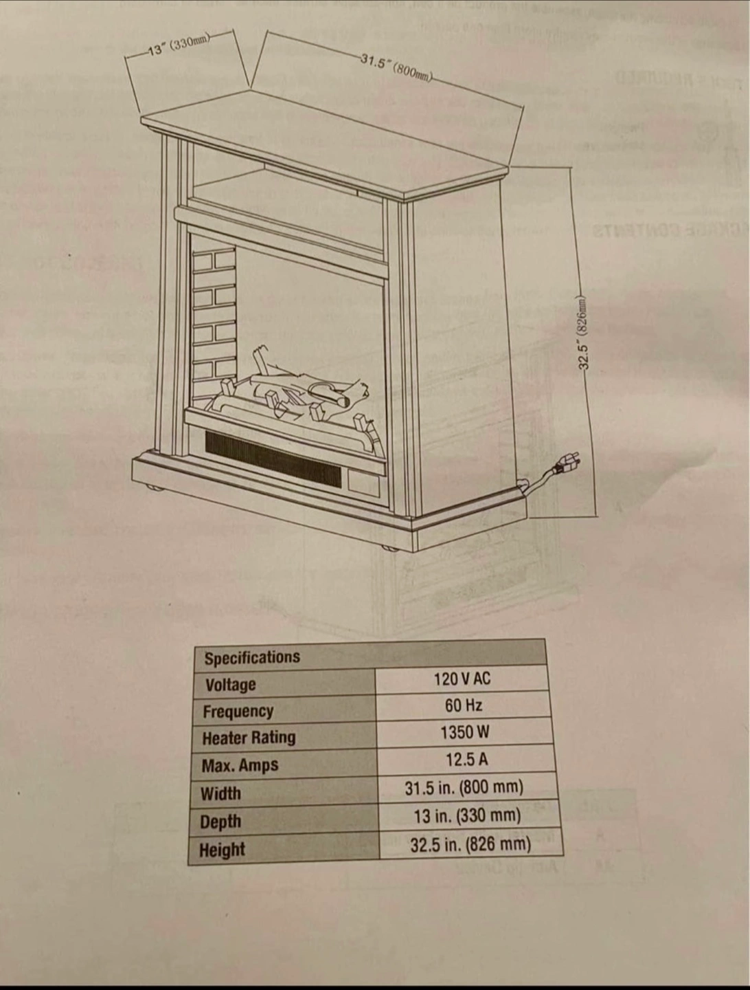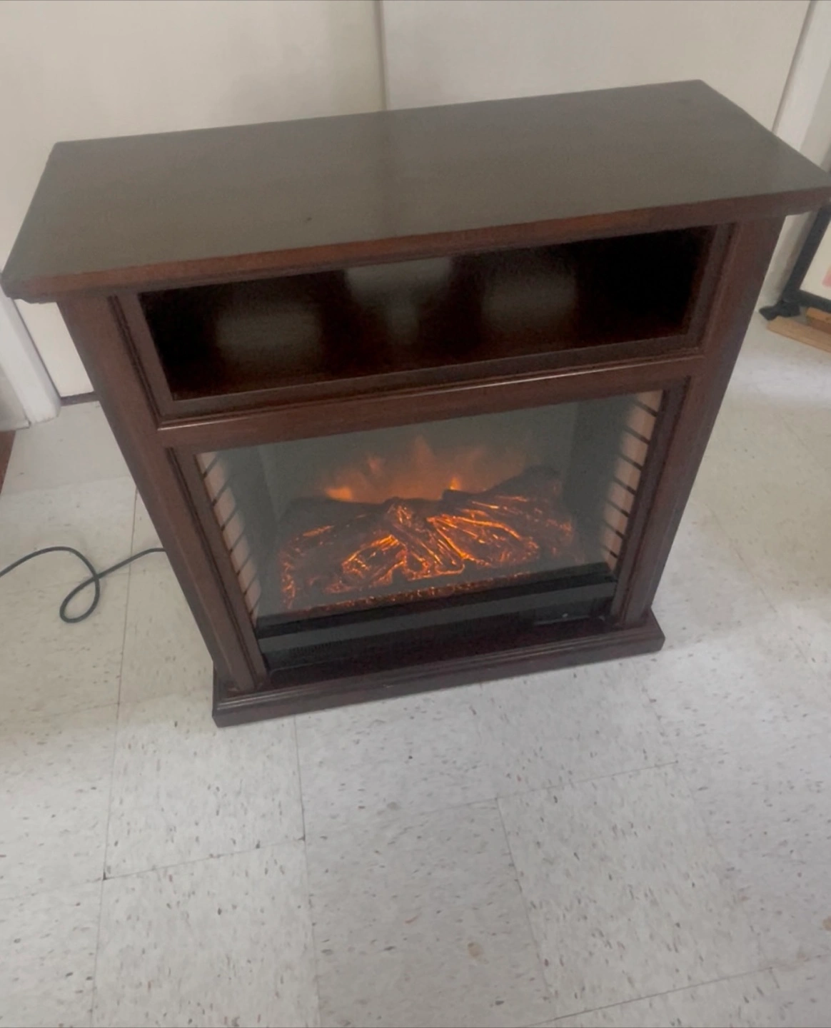 Selling a nice electric fireplace heater! It's in great shape and ready to warm up your space. - Dimensions: 31.5 inches wide, 13 inches deep, and 32.5 inches high - Voltage: 120 V AC - Frequency: 60 Hz - Heater Rating: 1350 W