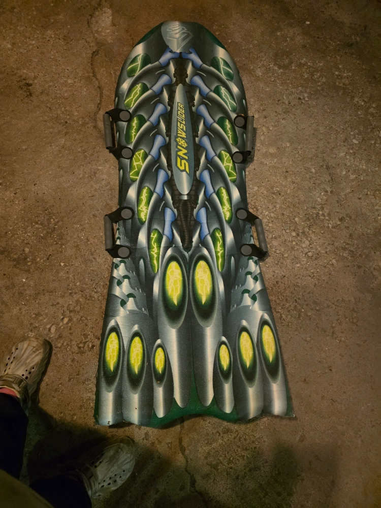 Selling a snow slider sled. It has a unique design and multiple handles for a fun ride down the slopes. Perfect for winter adventures!