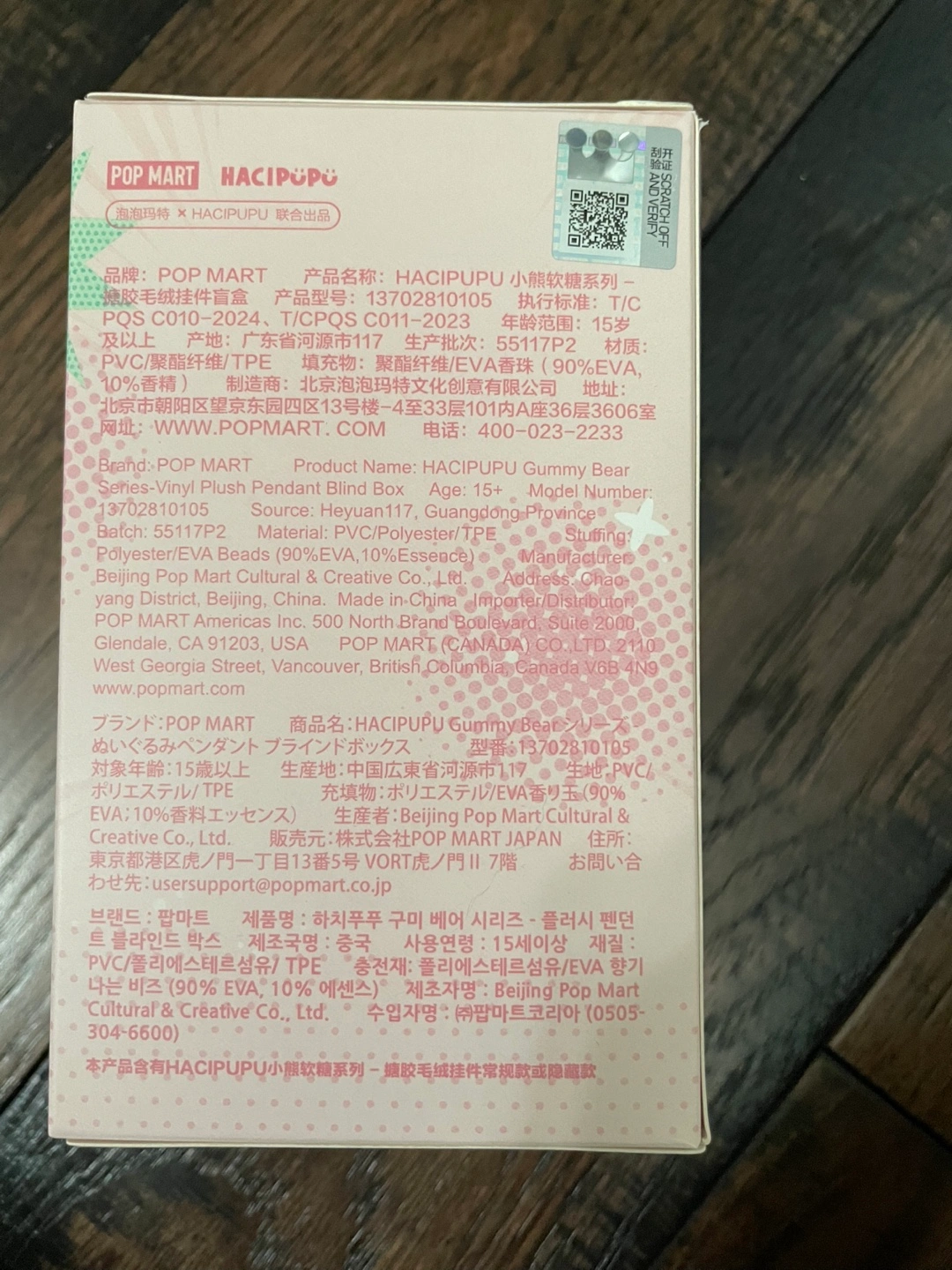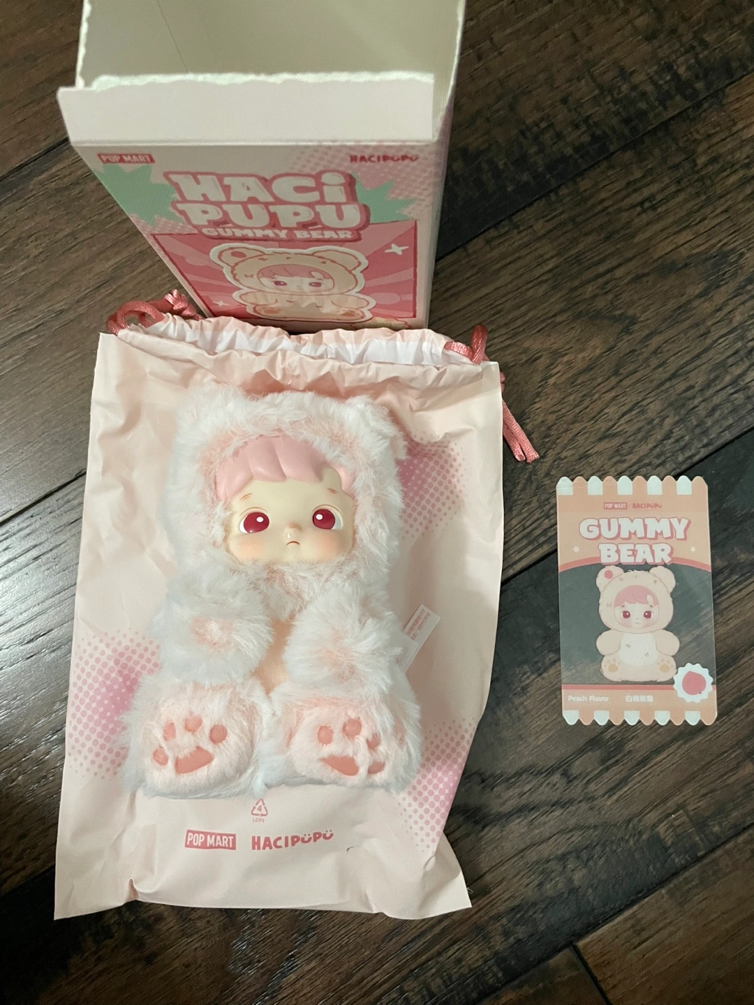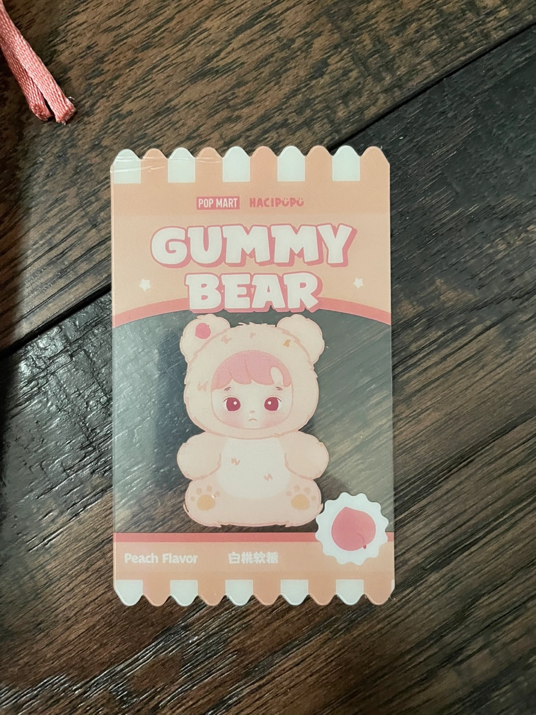 Selling a HACIPUPU Gummy Bear Vinyl Plush Pendant Confirmed Peach from Pop Mart! It's a super cute vinyl plush pendant. The box was opened to confirm only. The box includes important information, so please keep it for further use! Small parts may be a choking hazard for children under 3 years old