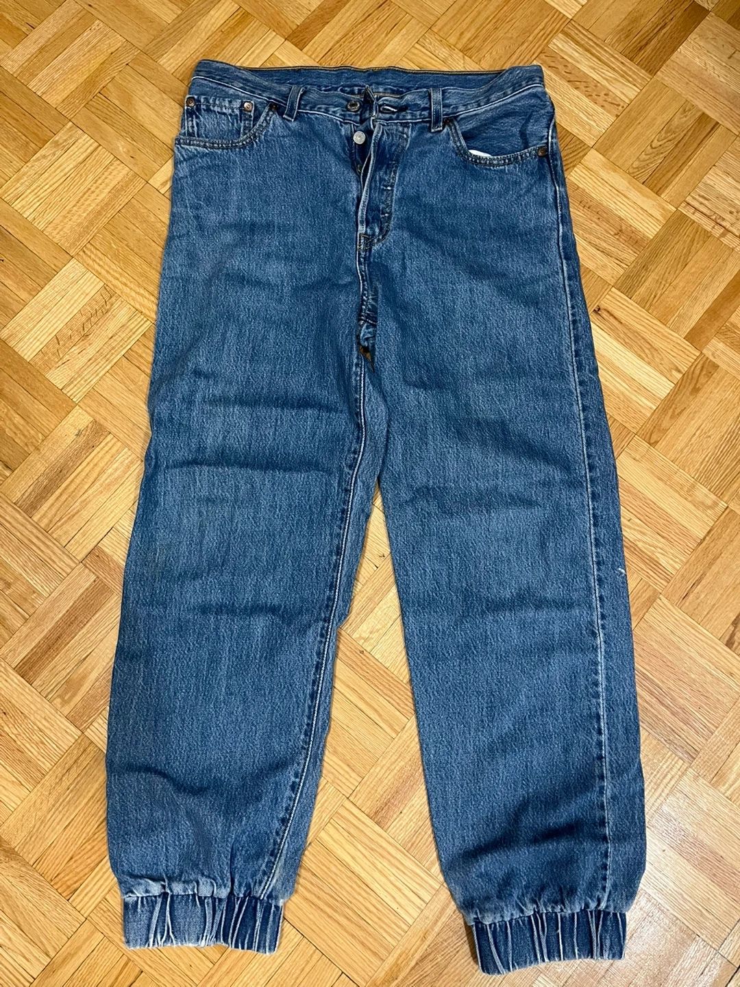 Selling a pair of Levi's 501 jeans! They're a classic style and in great condition. The jeans are a nice blue colour and have the iconic Levi's patch on the back pocket