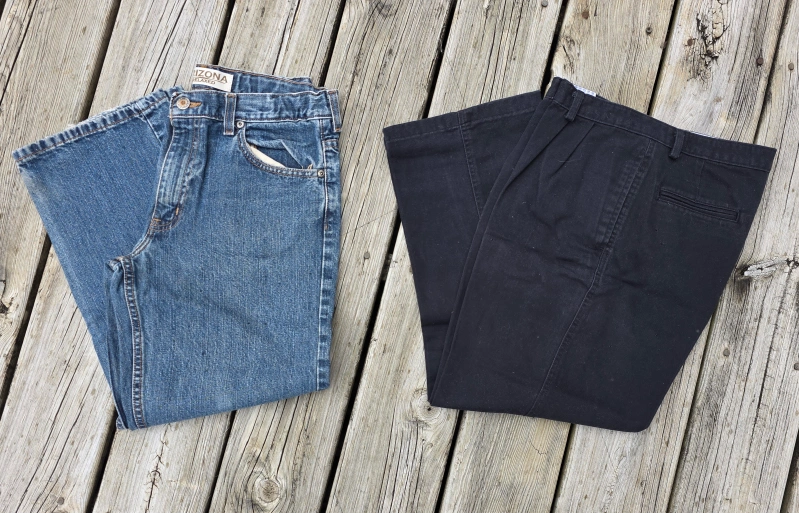 Selling a pair of Arizona brand jeans and a pair of black pants. Both in good condition and ready for a new home! Pick up in Naperville near naper blvd and 87th street or near downtown Naperville off of Chicago and Charles
