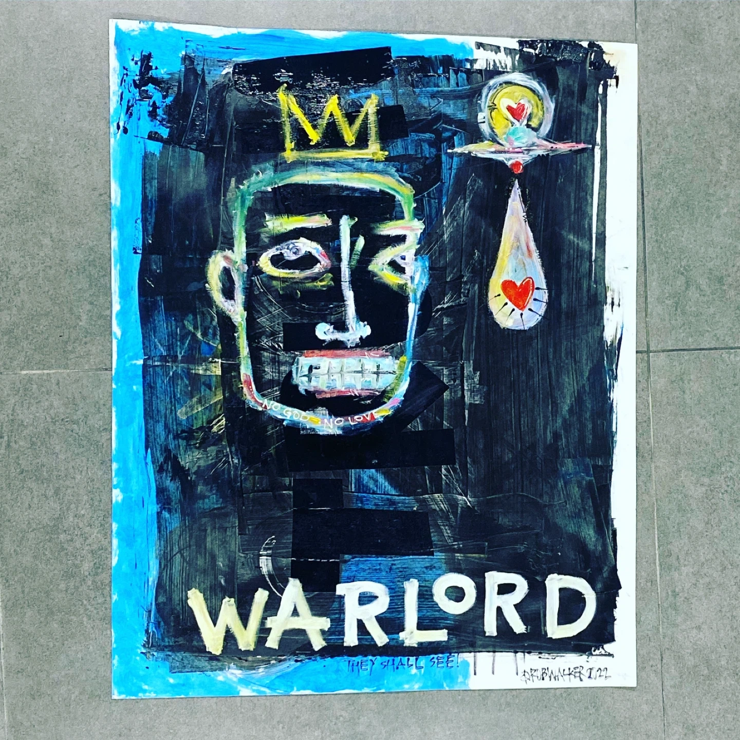 19Mr. Mindful Original painting titled "Warlord". Features a unique artistic style with bold colors and striking imagery. Signed by the artist.