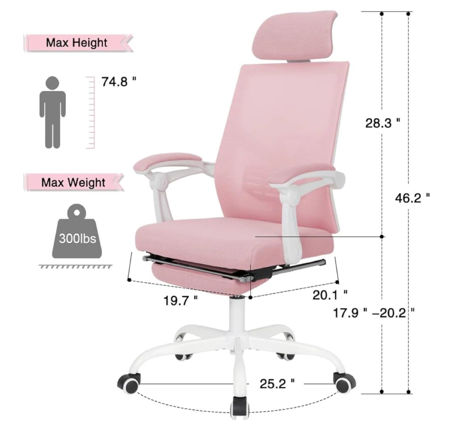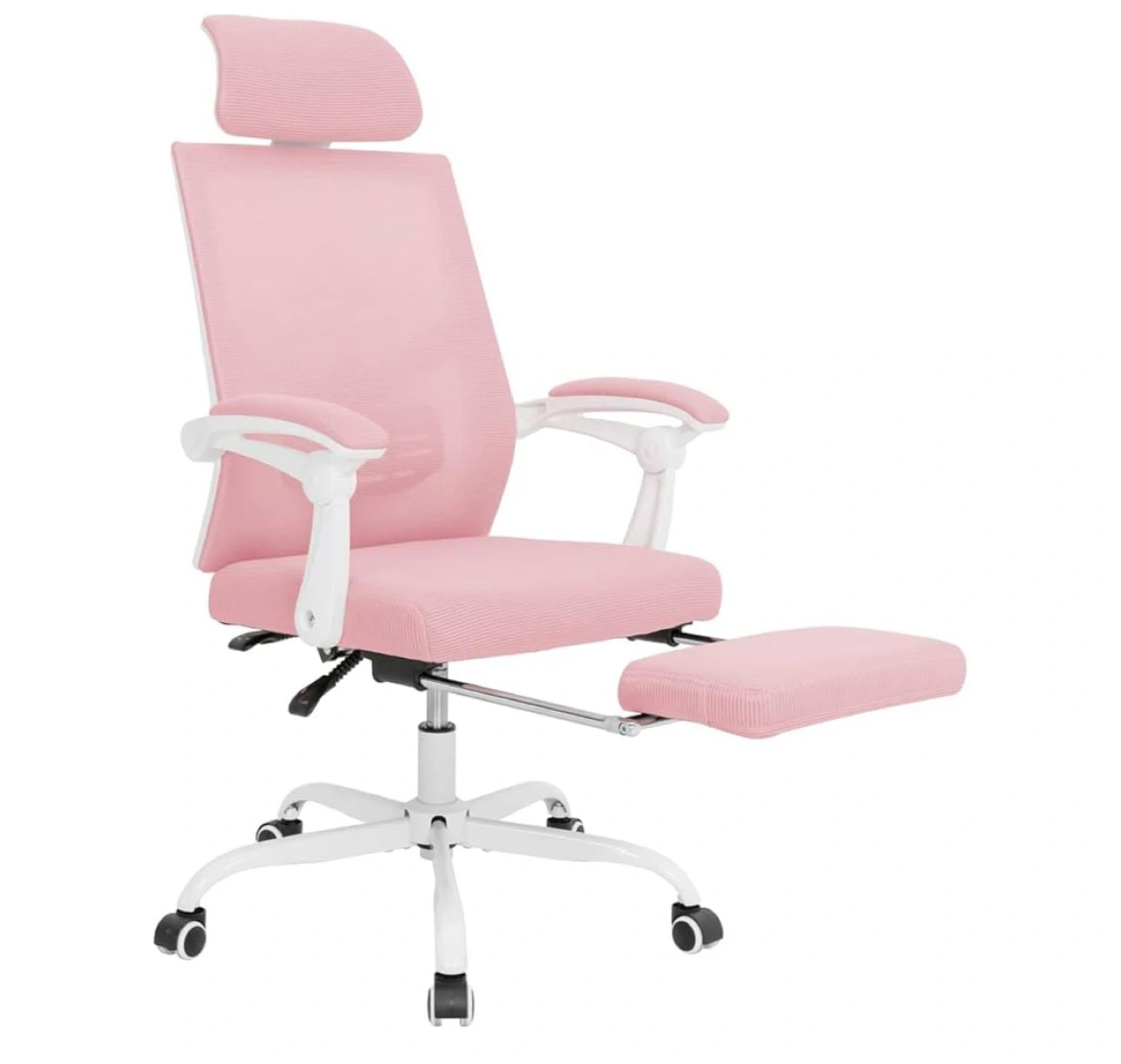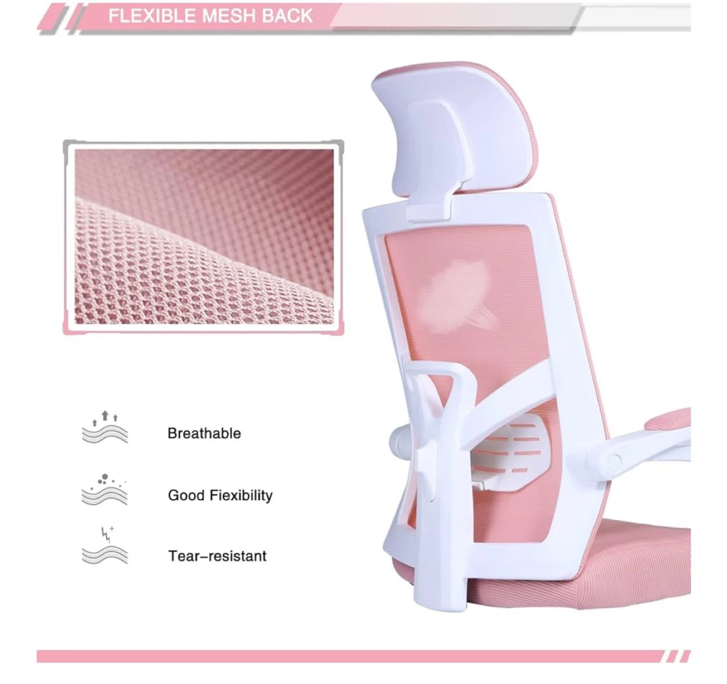 Get comfy with this cute pink ergonomic office chair! It features a breathable mesh back for good flexibility and tear resistance.