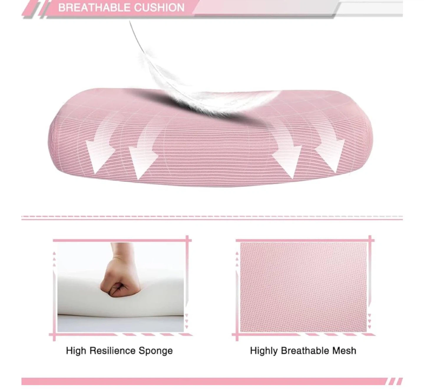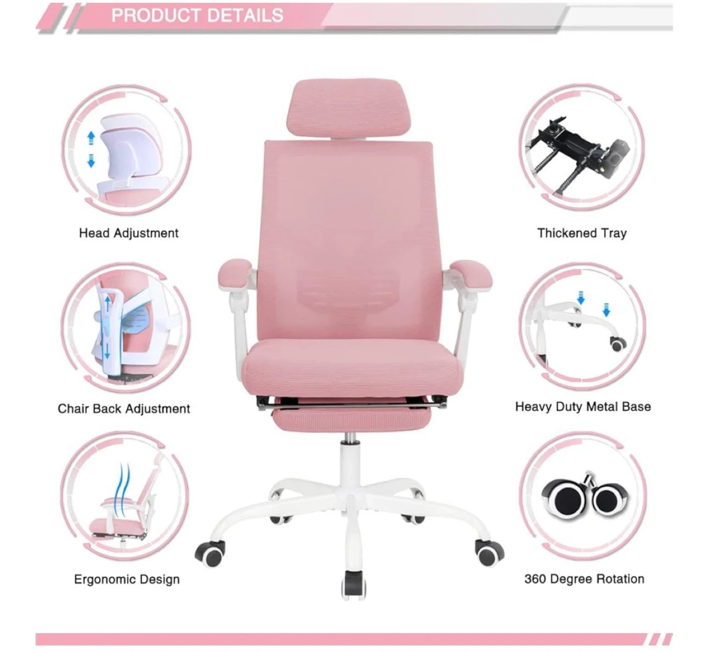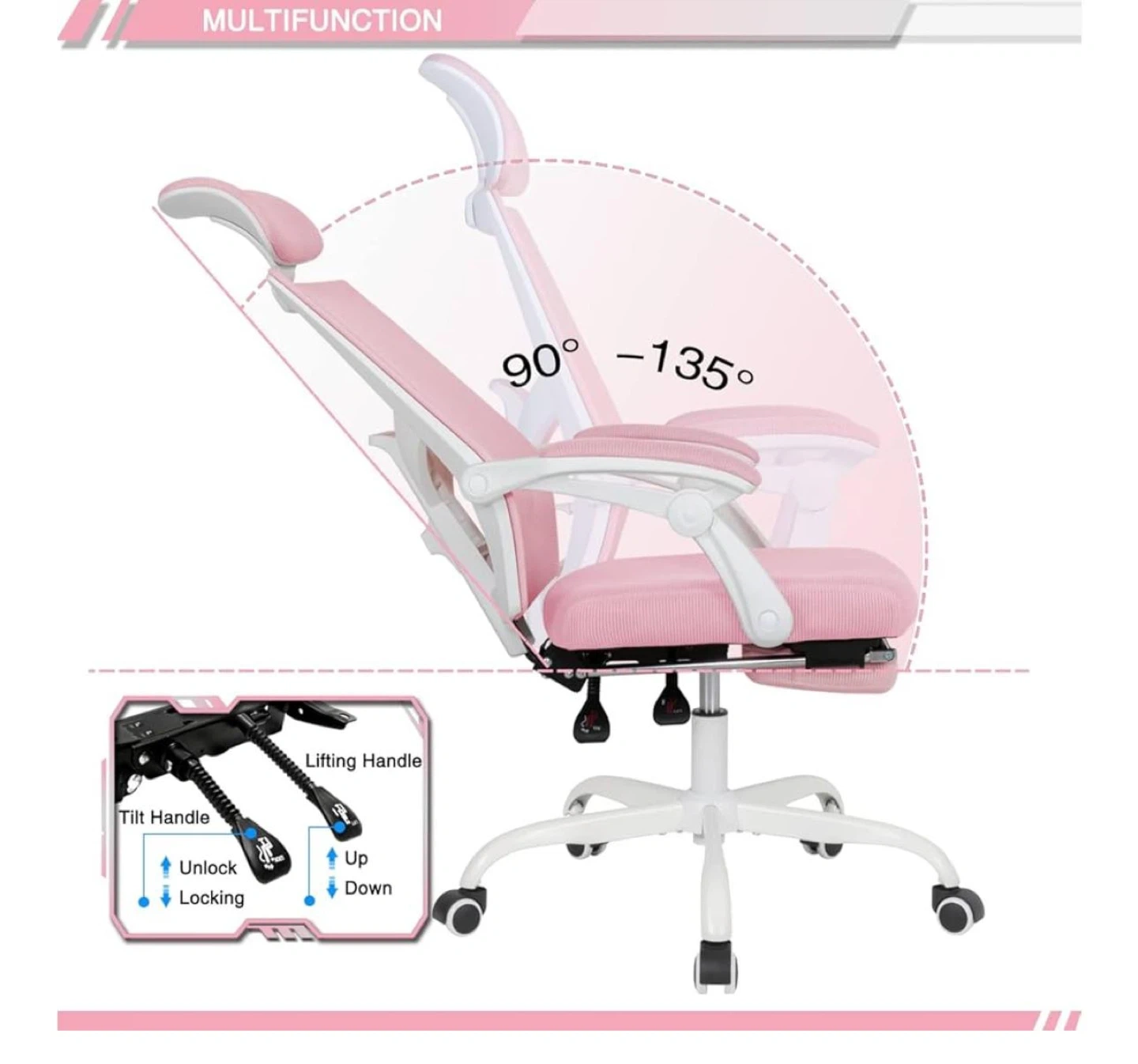 Get comfy with this cute pink ergonomic office chair! It features a breathable mesh back for good flexibility and tear resistance.