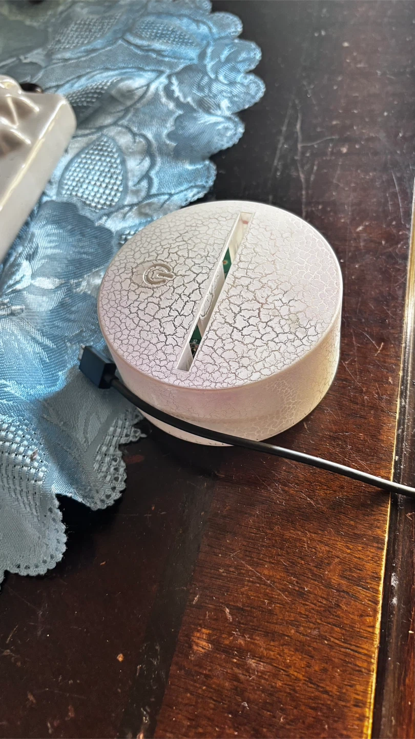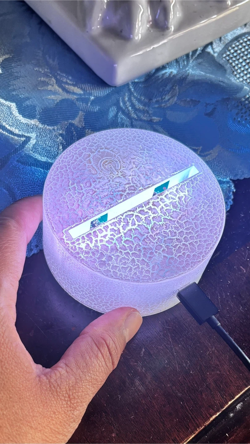 1000+This is a crack base LED display stand. It changes colors and is powered by USB. It is in good condition and would be a great addition to any room
