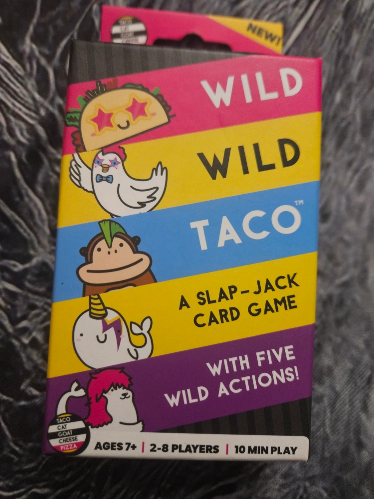 I'm selling a brand new Wild Wild Taco card game! It's a slap-jack card game with five wild actions. It's great for ages 7+ and for 2-8 players. Plays in just 10 minutes!