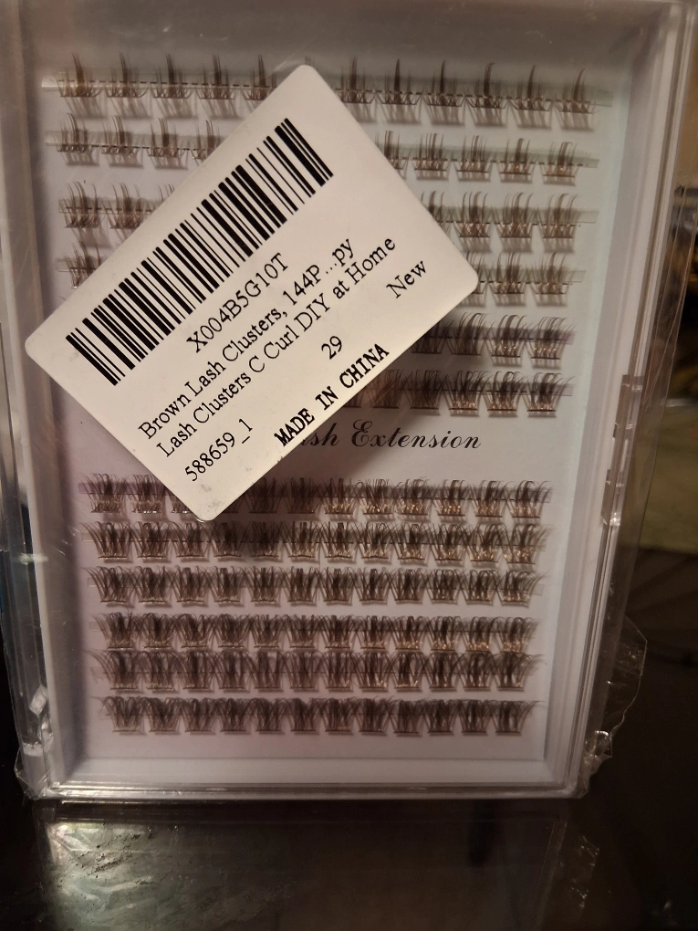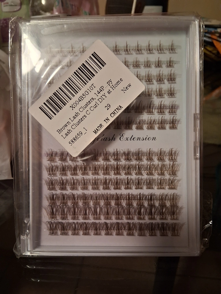 I'm selling a pack of new brown lash clusters. There are 144 pieces in the pack. They are C curl and perfect for DIY lash extensions at home