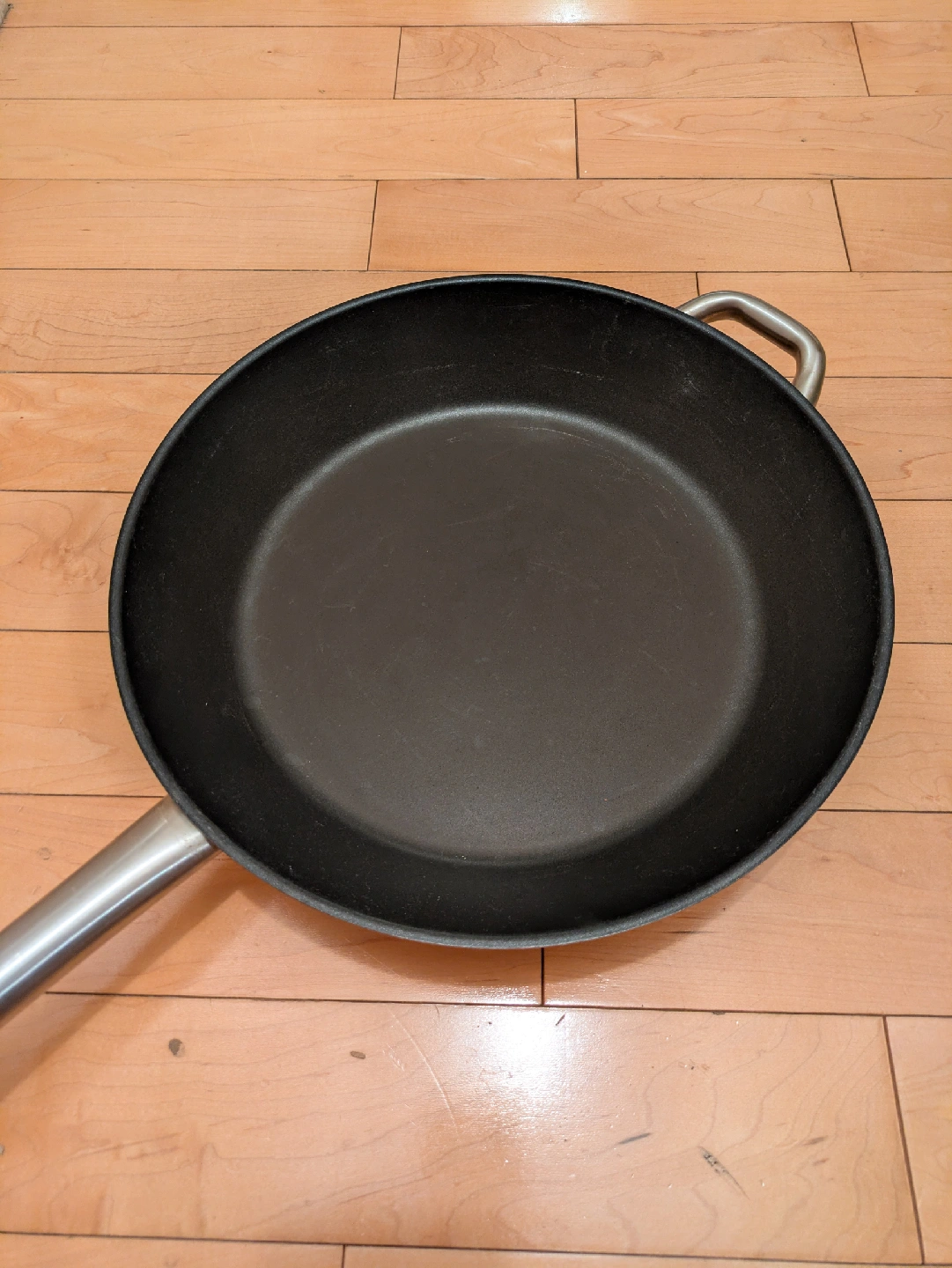 143It's bigger than it looks. 12.5-inch. I cooked it a few times and forgot about it. Non-stick.