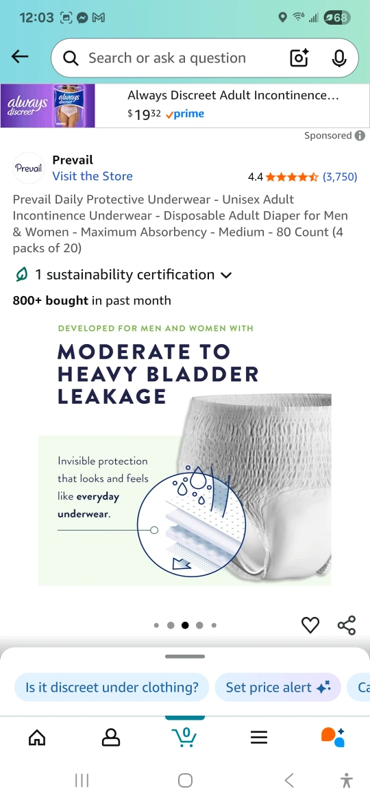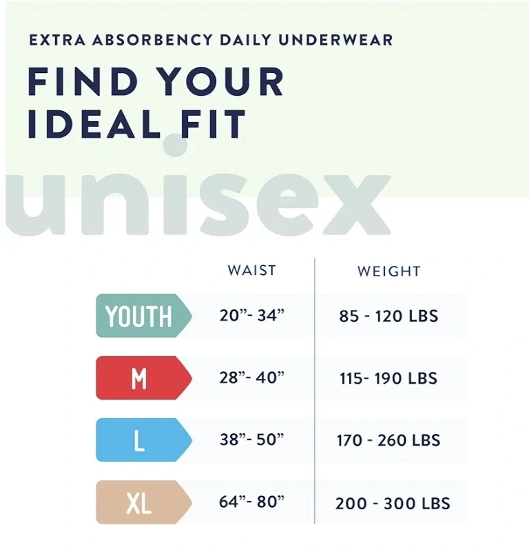 Selling a pack of Prevail Daily Underwear. They are large size, fitting 44-58 inches. These are designed for extra absorbency and feature MaxSorb Gel Technology for maximum protection. They also have Skin Smart technology and Omni-Odor Guard for comfort and confidence