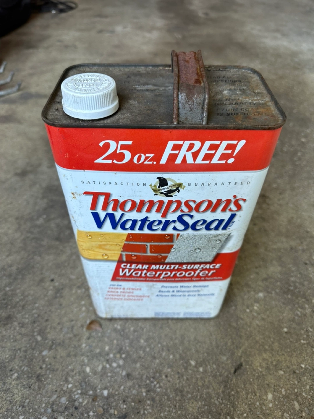 20Thompson's WaterSeal Clear Multi-Surface Waterproofer. It's a clear sealant that protects against water damage and is suitable for different types of surfaces. It also allows wood to gray naturally