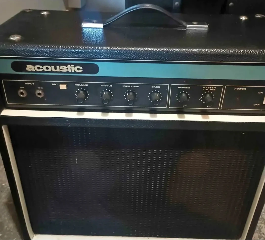 76Vintage 1970's Acoustic Model #114 100 Watt Amplifier ( Made in the USA ) The Killer Sound from This Beast Is the Cleanest Amp Ever The Superior Electronics Cant Be Beat and Still Funtion As New Master Volume and Bright Switch Round Out the Control Panel These Early Acoustics Were Bulit like Brick Shithouses ( Made of Real 1970's Plywood ) It Has Footswitchable Great Reverb and Master Volume The 2 Original Front Loaded 10" Speakers are Clear as a Bell THEY CAN BE UNPLUGGED In Order To Use a Separate Cabinet And Yes The Fully Intact Grill Can Easily be Removed Cabinetry Gone Over Cleaned and Polished ( No Dust Bunnies ) I Cant Say Enough About This Gem That I Hate to Part With Don't Let It Slip Through Your Fingers!! Please See Pics... Check Out My Page For More Great Items