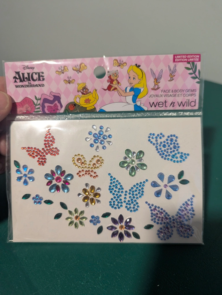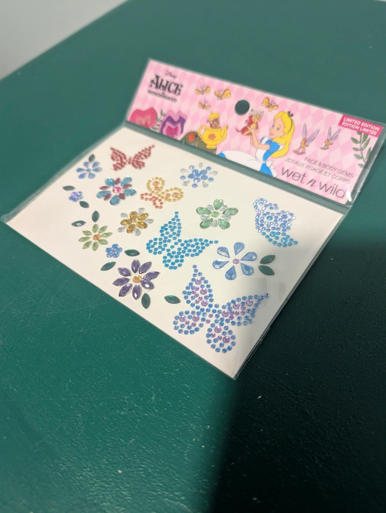 Selling a pack of Wet n Wild face and body gems featuring a Disney Alice in Wonderland theme! These are limited edition gems perfect for adding a touch of sparkle