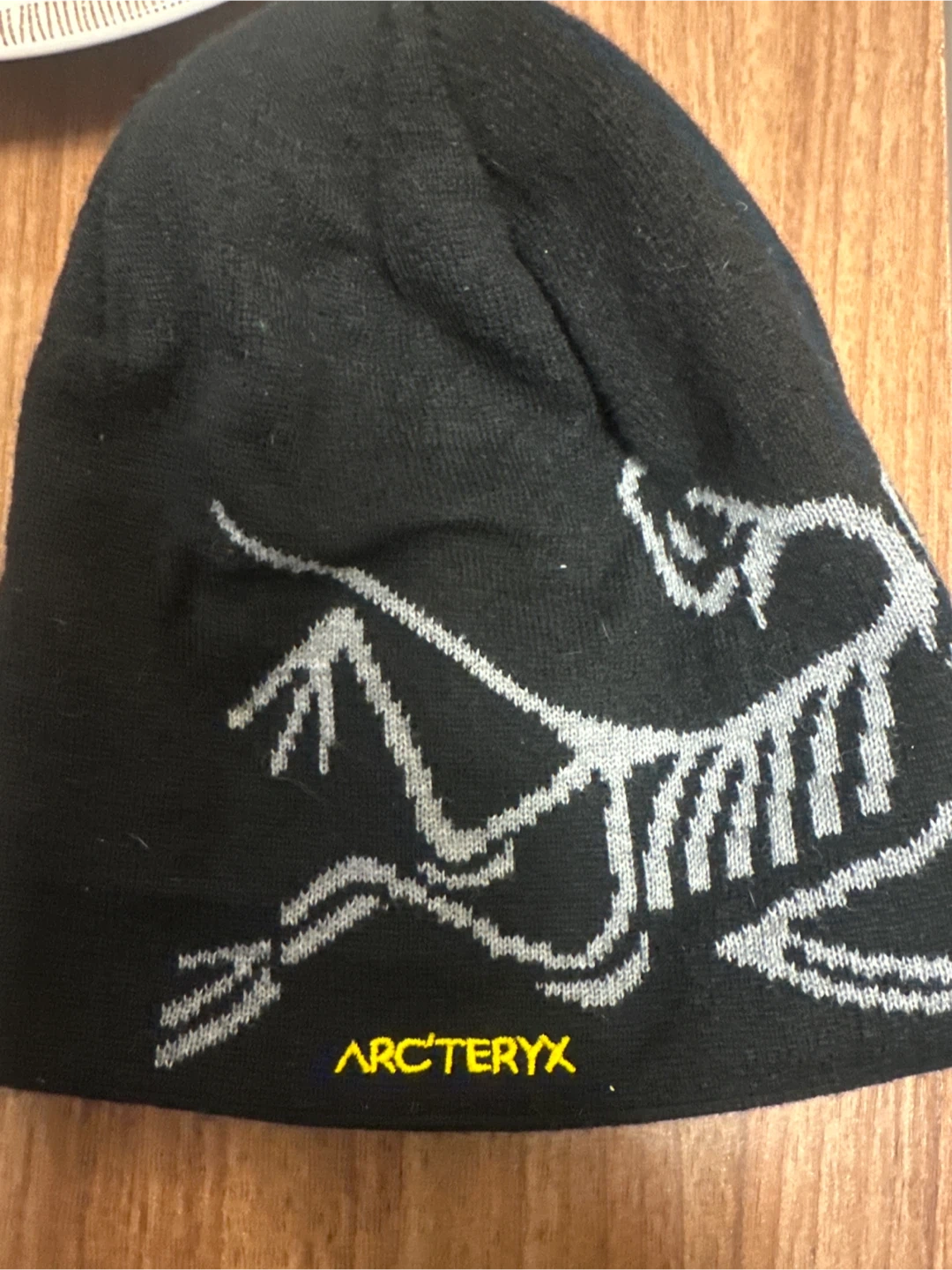 99Selling a black Arc'teryx beanie. It features the iconic Arc'teryx logo in a light gray design. Perfect for keeping warm!