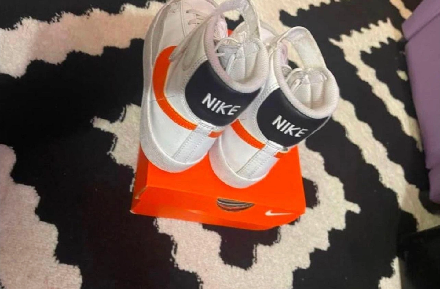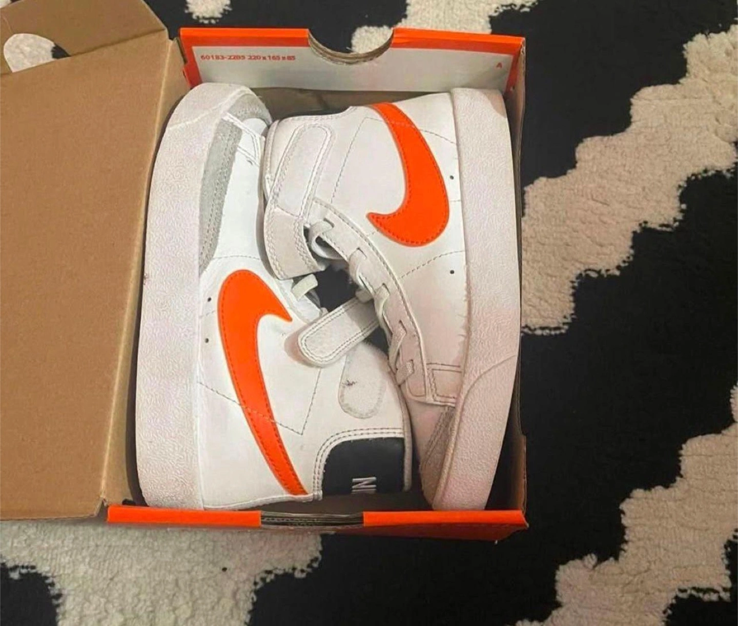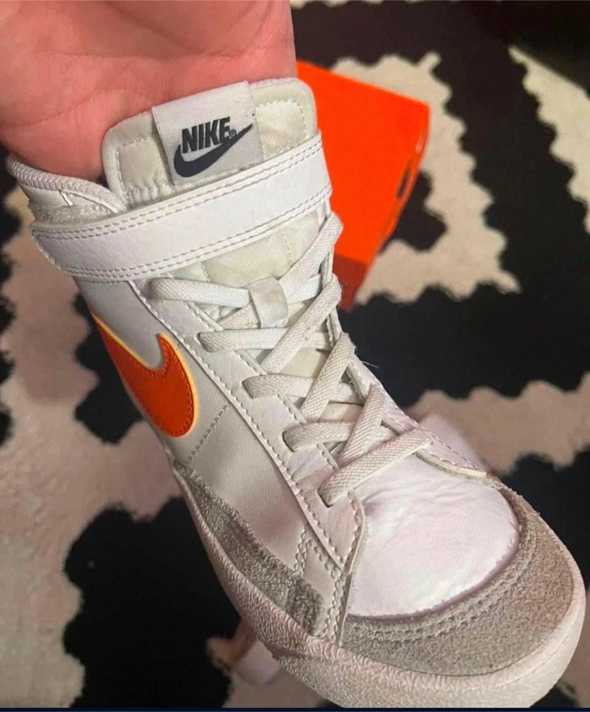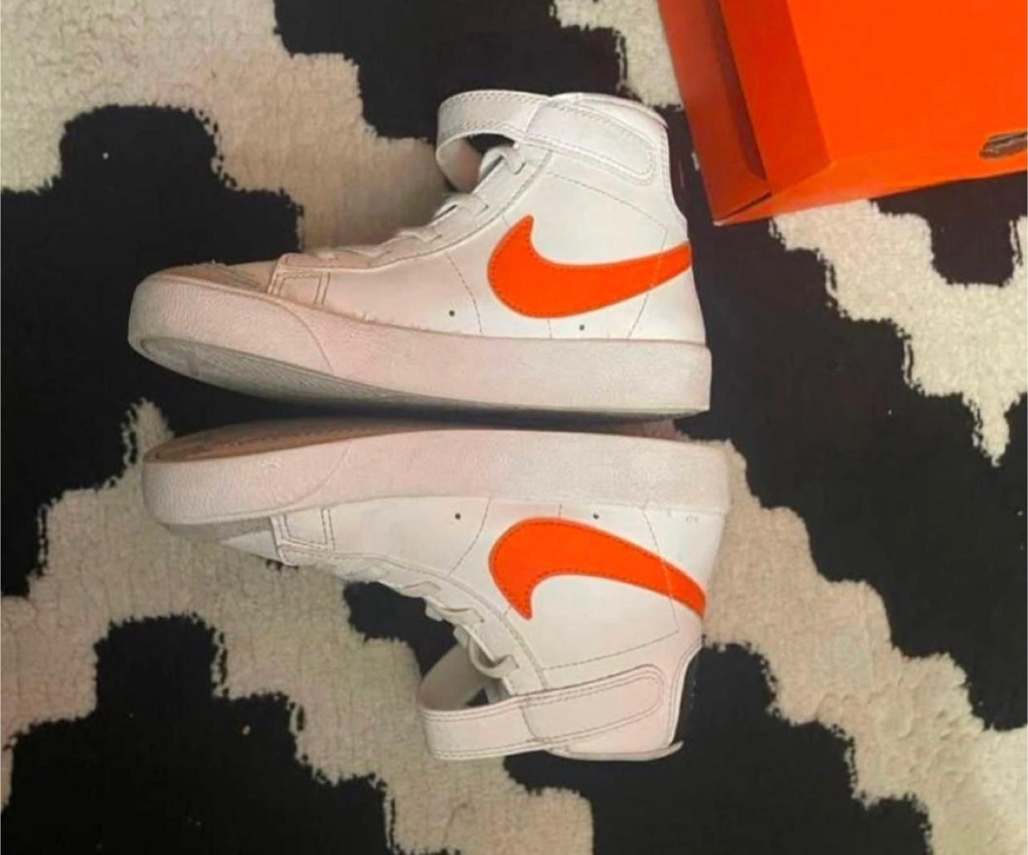 95Selling a pair of Nike Blazer Mid '77 toddler shoes in size 1Y !These cute sneakers feature a white and orange colorway with the iconic Nike swoosh. They come with the original box! RETRO LOOK. TRUSTED COMFORT. For kids 6-9 years Your little baller can rule the sneaker game in the Nike Blazer Mid '77. They were given to my son as a gift. He used them twice and they are like new. He is selling them because he doesn't like them anymore. The vintage look and comfortable feel help this court classic transcend the hardwood into a legend of street style. Solid rubber sole delivers traction and durability. Mid-rise collar provides stability and a natural fit for little feet. Elastic laces and a hook-and-loop strap create a secure fit that's easy to take on and off. size 1Y