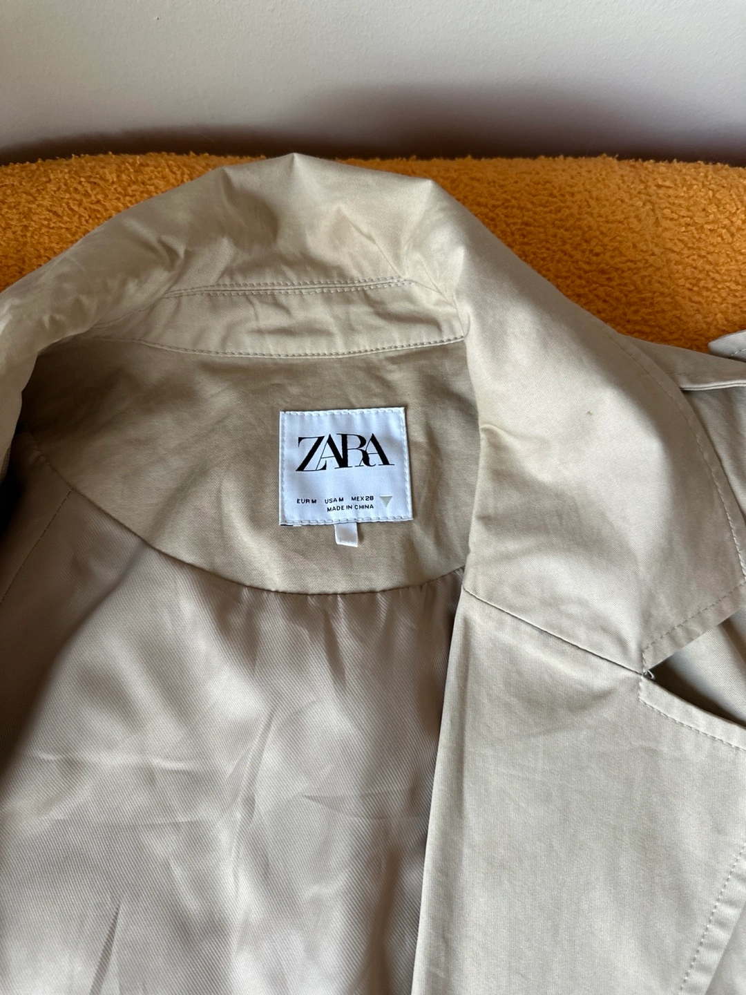 Selling a Zara cropped trench coat in a beautiful beige color! It's a size M and in great condition. Perfect for layering or wearing on its own for a stylish look