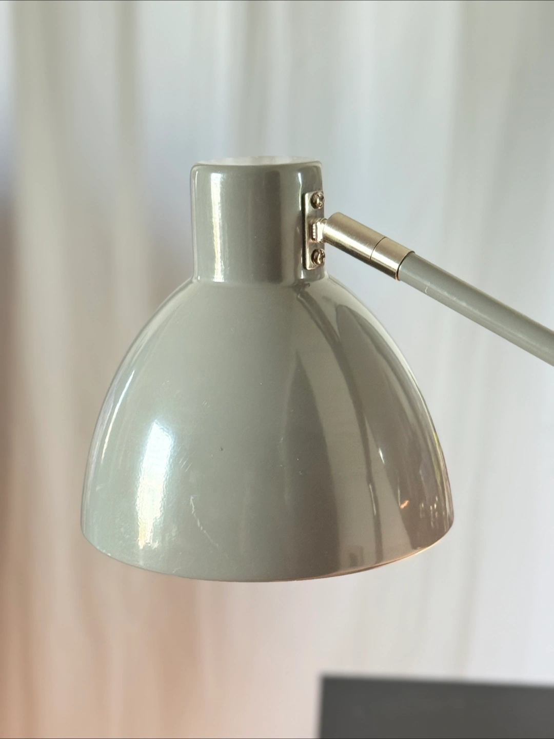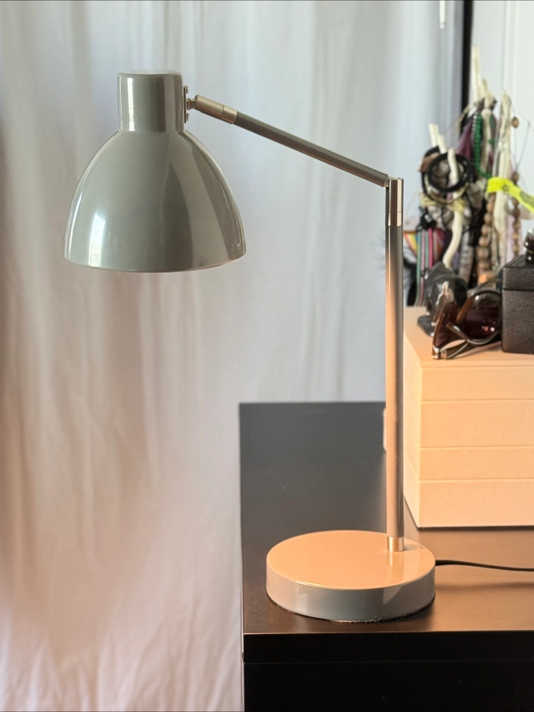 1000+Desk Desk Lamp with Touch On/Off Gray - Pillowfort™ in good condition. It's a nice modern gray color and would be perfect for a desk or nightstand Touch on and off feature- touch anywhere to turn on or off. Also the lamp shade/bulb turns 90 degrees to point light upwards or to the side, has a slender neck that can extend to where you need it. I love this lamp and wish all lamps worked like this!! Discounted because of used condition with some scratches, very hard to see in photos because hard to see! lol