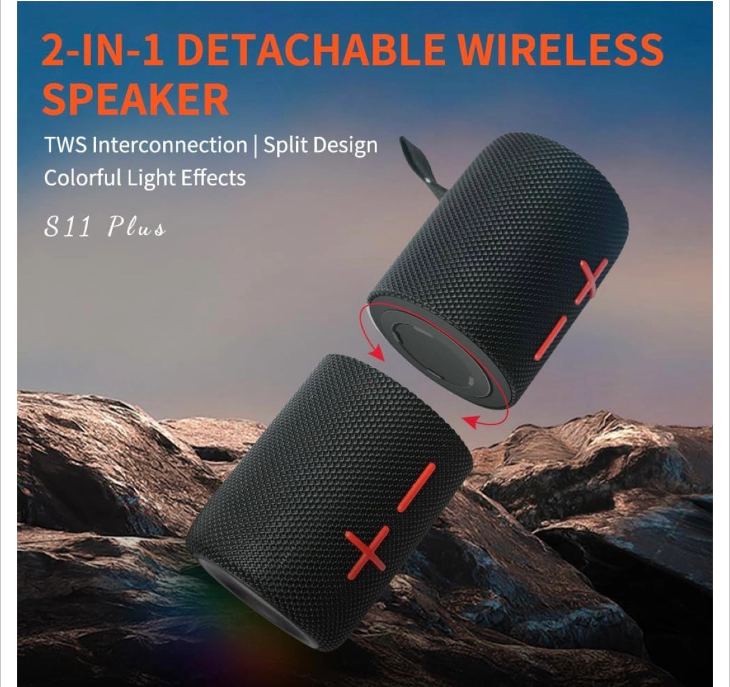 46Selling a 2-in-1 detachable wireless speaker, model S11 Plus! It features TWS Interconnection and a split design, plus colorful light effects