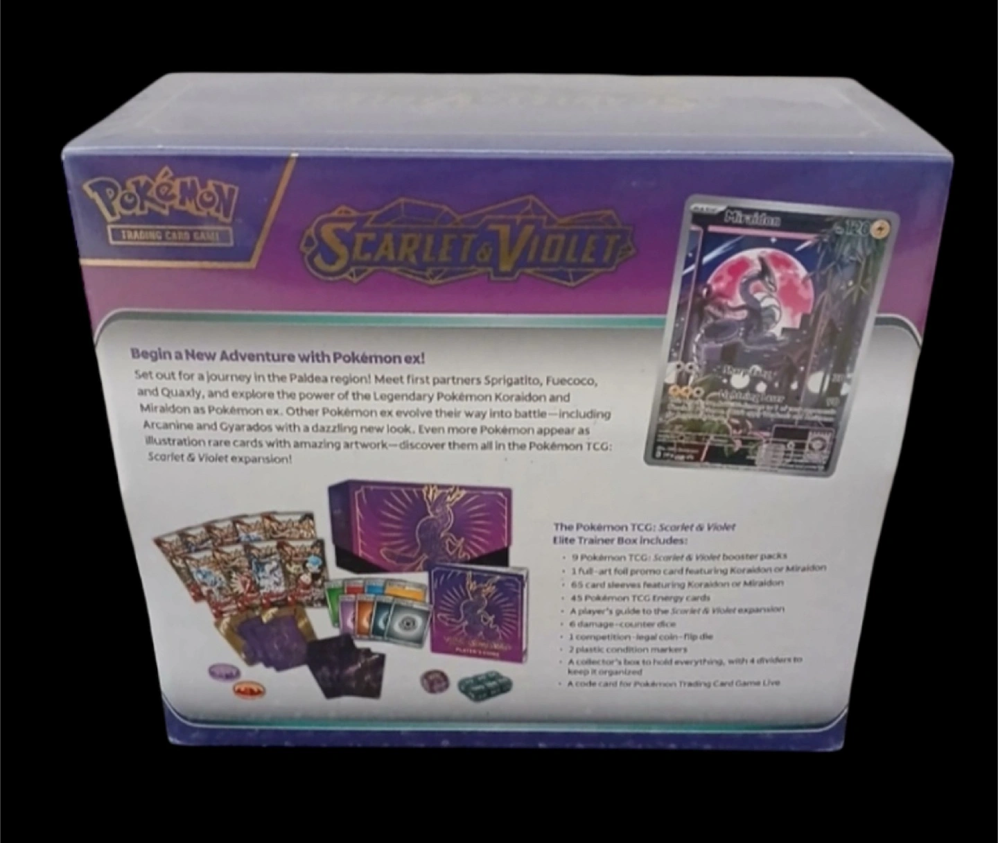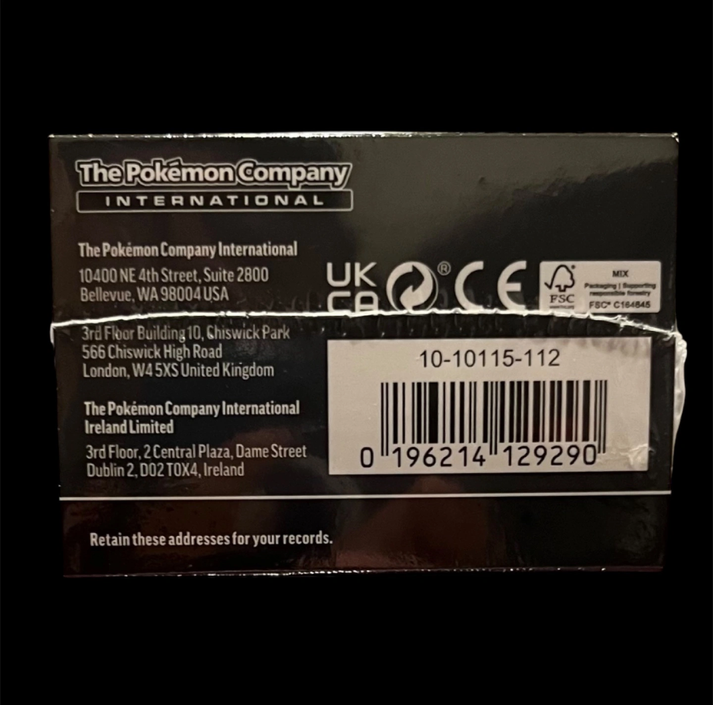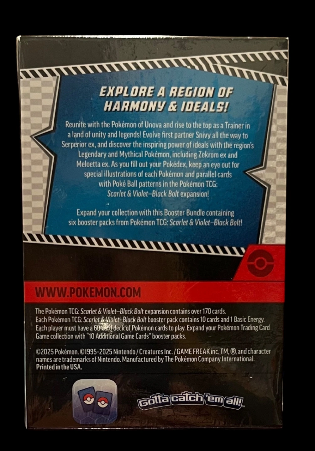 Selling a Pokemon Trading Card Game bundle. Includes Scarlet & Violet Black Bolt Booster Bundle (6 booster packs), Scarlet & Violet Elite Trainer Box, and Holiday Calendar