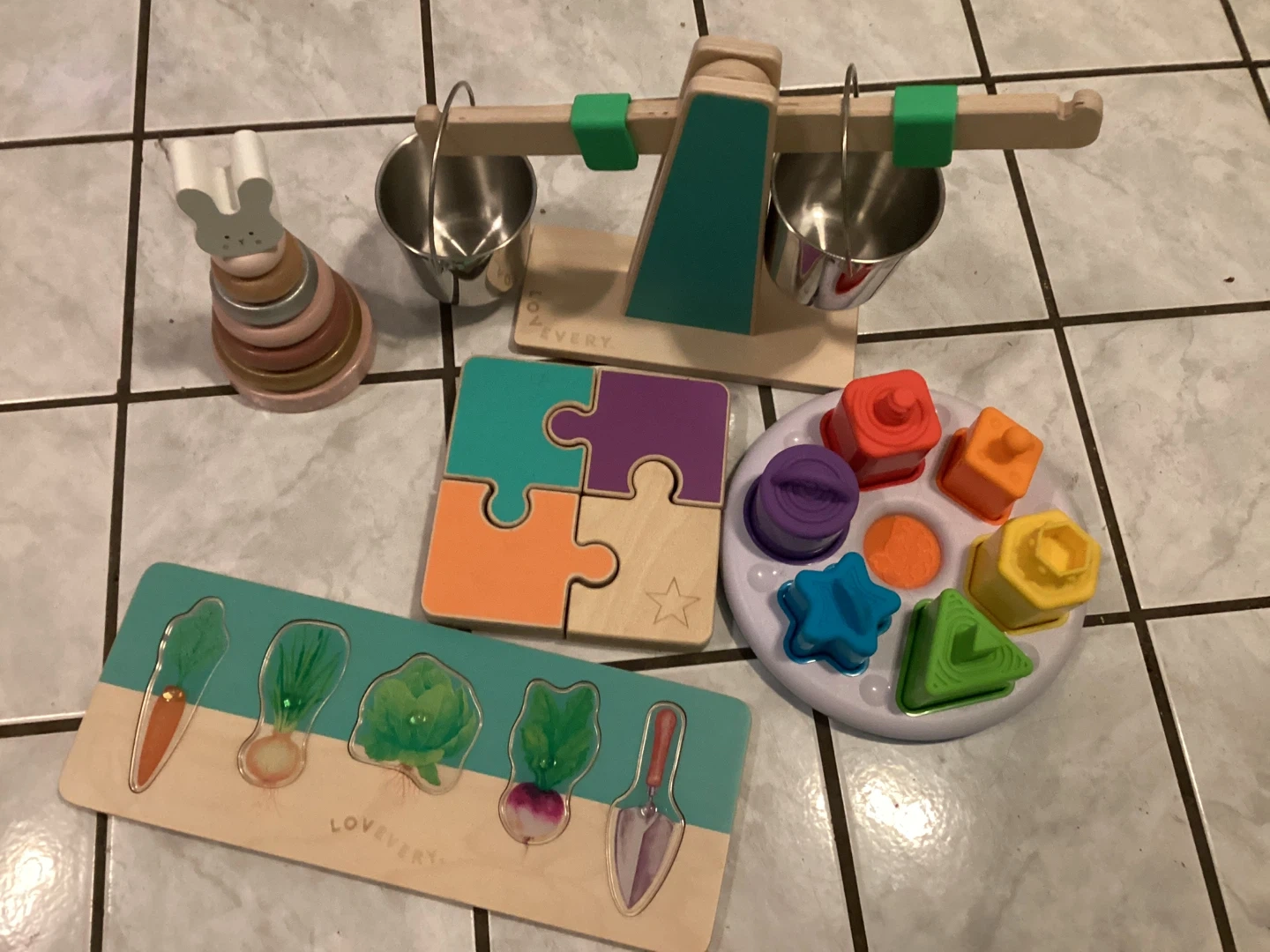 Selling a bundle of Lovevery toys! Includes a variety of puzzles, stacking toys, and shape sorters. Great for early childhood development and educational play. Good to like new condition.