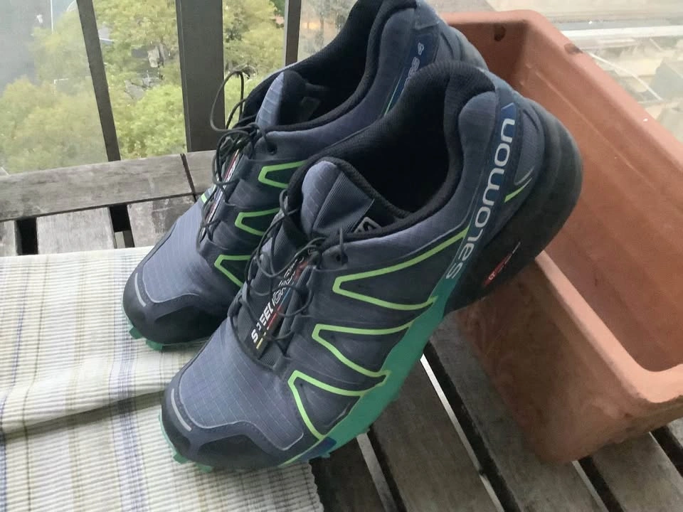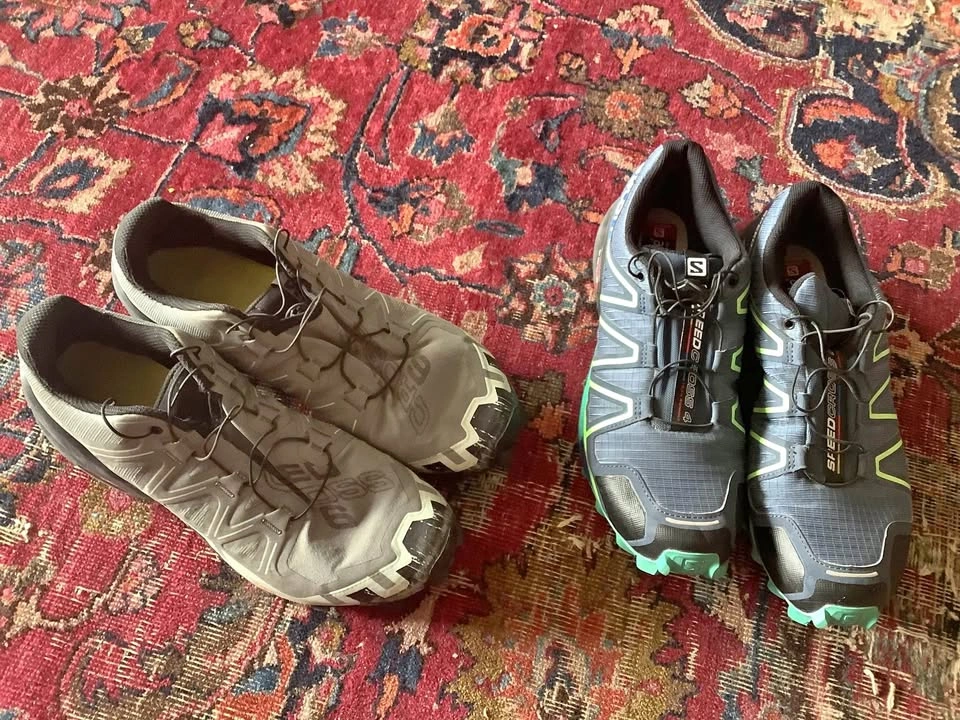 2 sets of Speedcross shoes - $55 each 1. Salomon Speedcross 6 Black and Gray - Sz M9.5 / W10.5 / Euro 43 1/3 - Very good condition- sold 2. Salomon Speedcross 4 Dark Blue and green - Sz M9.0 / W10.0 / Euro 43 1/3 - Near mint condition - $55