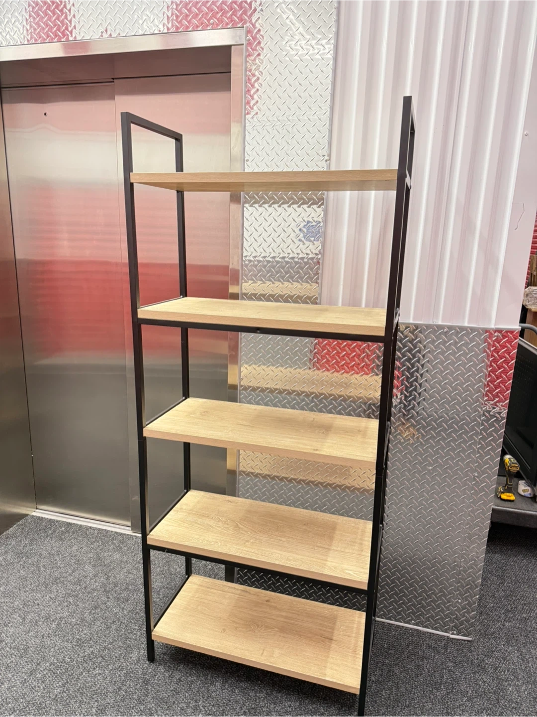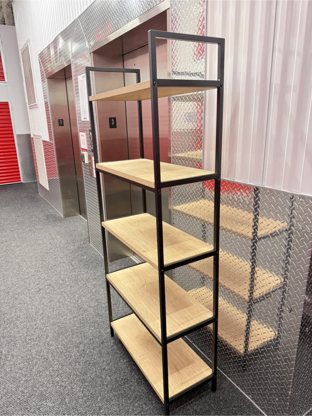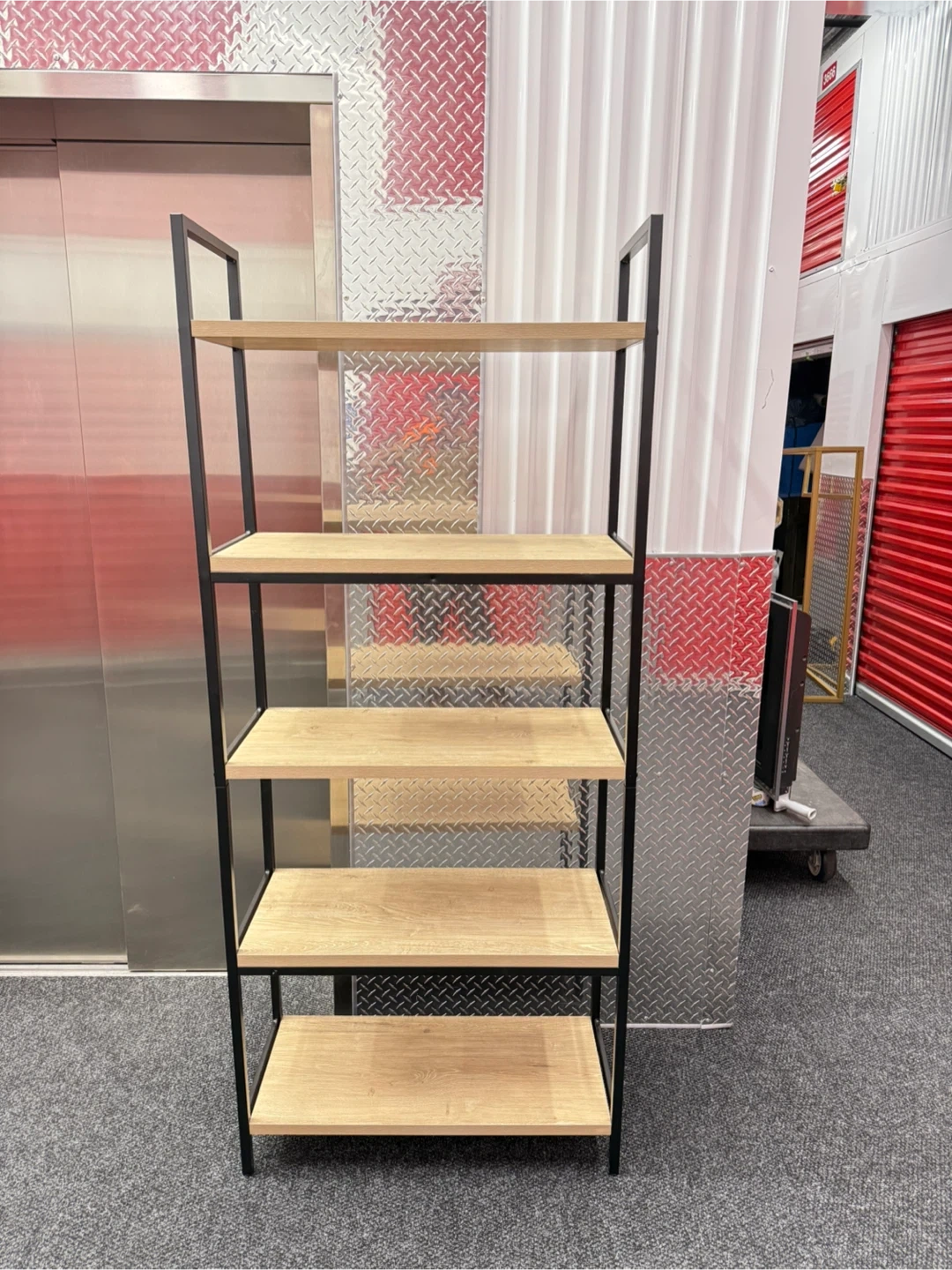 Here's a stylish 5-tier bookshelf with a black metal frame and light wood shelves. It's perfect for adding storage and a modern touch to any room. Great for books, plants, or displaying your favorite items!
