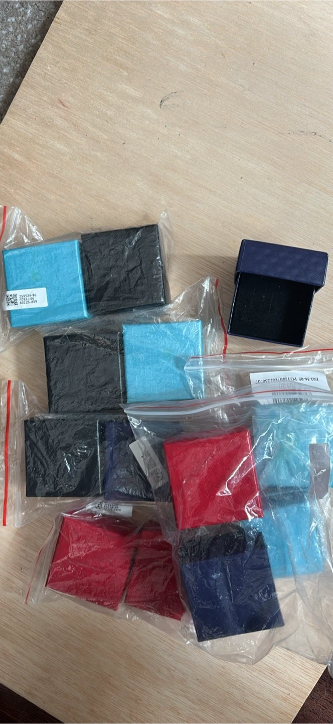 Gift (13) boxes in various colors. They are perfect for presenting small gifts like rings, earrings, or necklaces. The boxes are new in assorted colors such as blue, black, red, and navy. They're great for anyone looking to add a touch of elegance to their gift-giving Measure: 2” x 2” x1” . Read carefully…… Send your date and time for purchase preference on E. 34th and 1st Street across from NYU Hospital before 8 pm. No Zelle. Cash or PayPal only. Thanks!