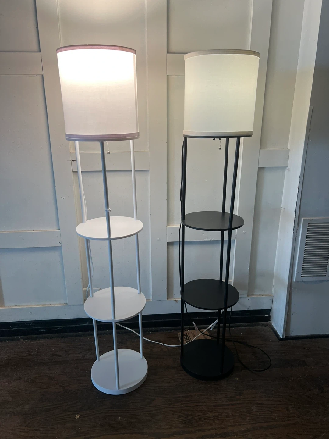 Buy & SellFloor Lamp with Shelves - Black & White /$ 25eachFloor Lamp with Shelves - Black & White /$ 25each$25Selling a pair of floor lamps, one black and one white. They both feature built-in shelves for extra storage or display. Great for adding light and functionality to any room!ConditionGood2 chats·0 favorites·30 viewsSELLERMattEdgewater847 reviewsWHERE TO MEET6550 N Sheridan