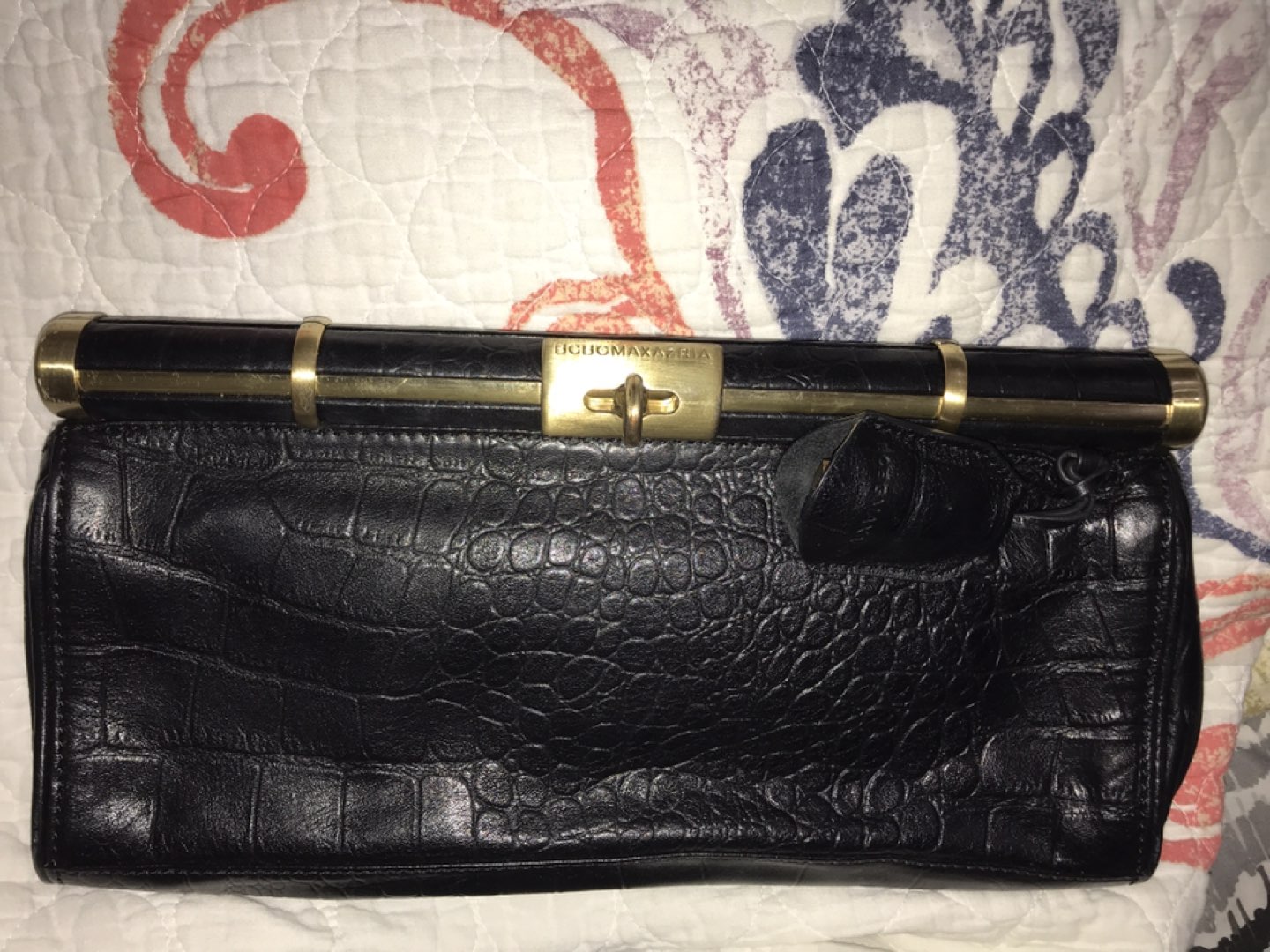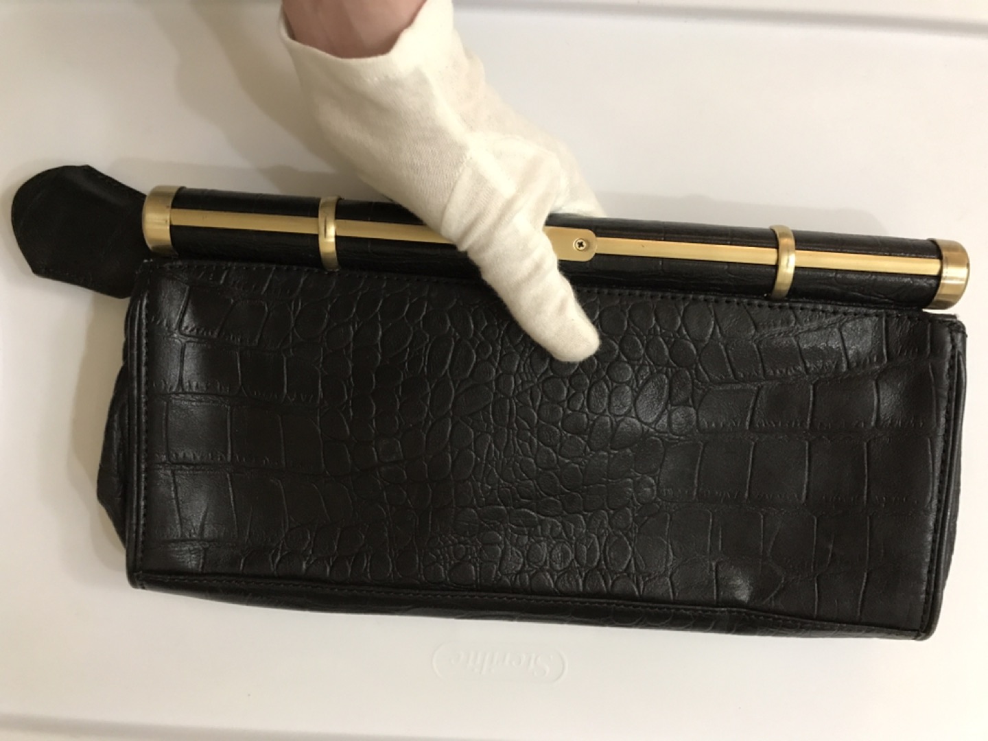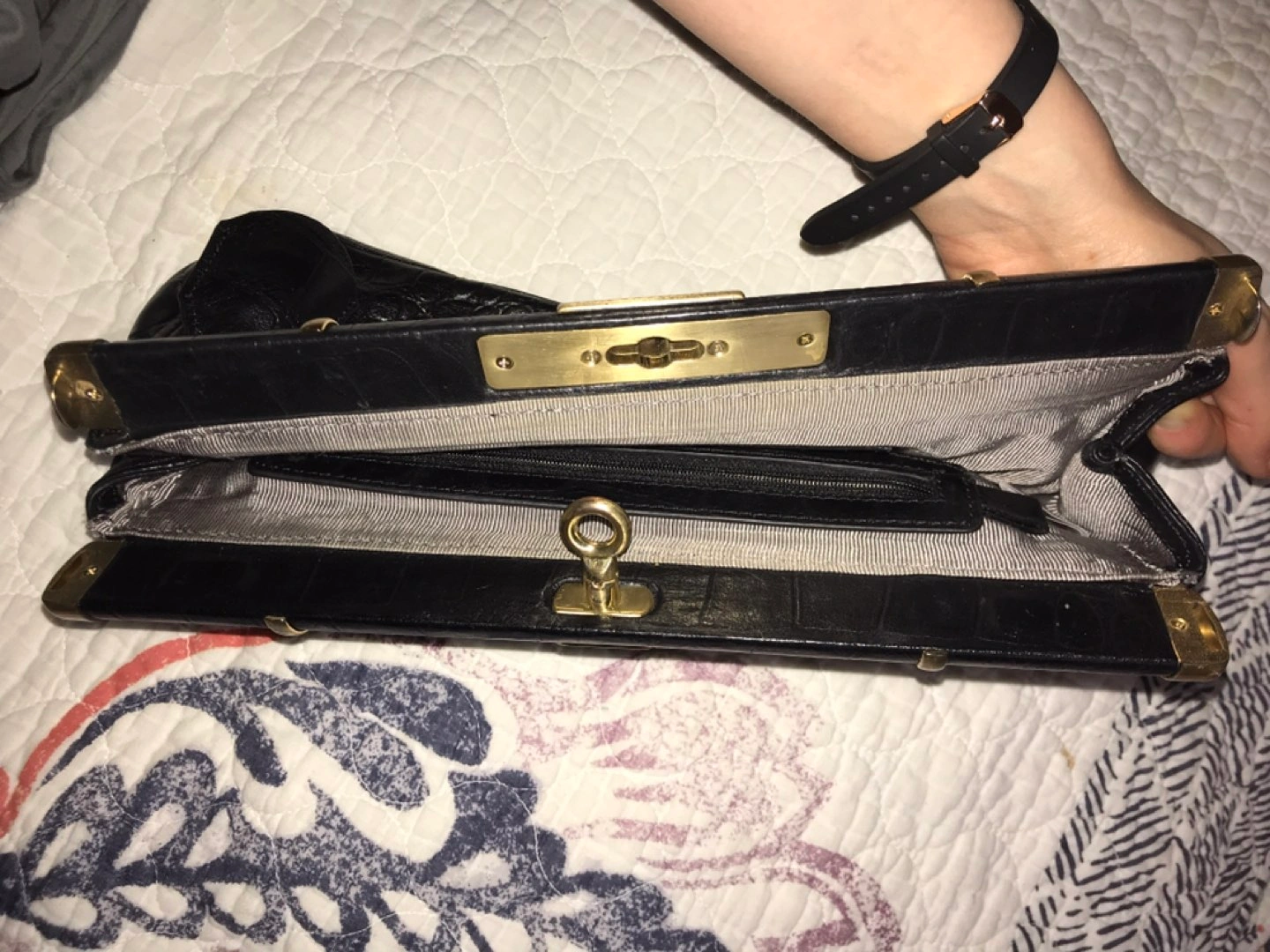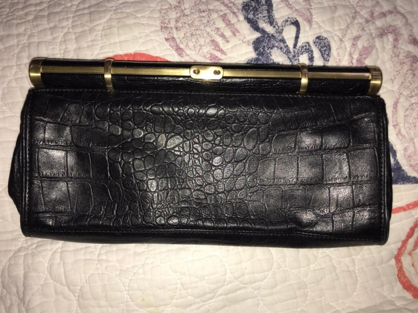 Natural embossed leather. Leather part is in perfect condition, metal parts a bit scratched. Lightly used)