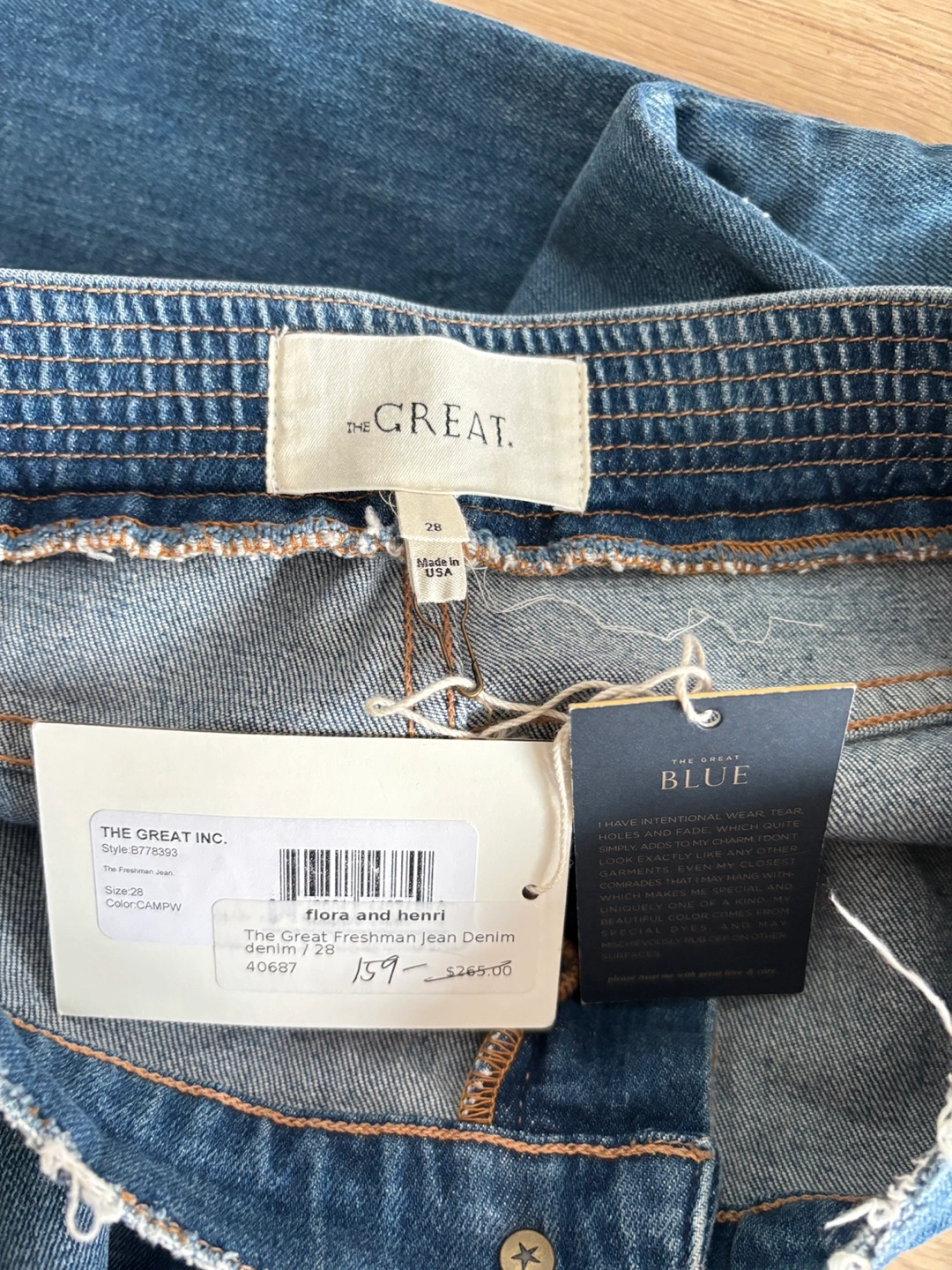 These are The Great Flora and Henri denim jeans in a size 28. New with tag, originally sells for $265