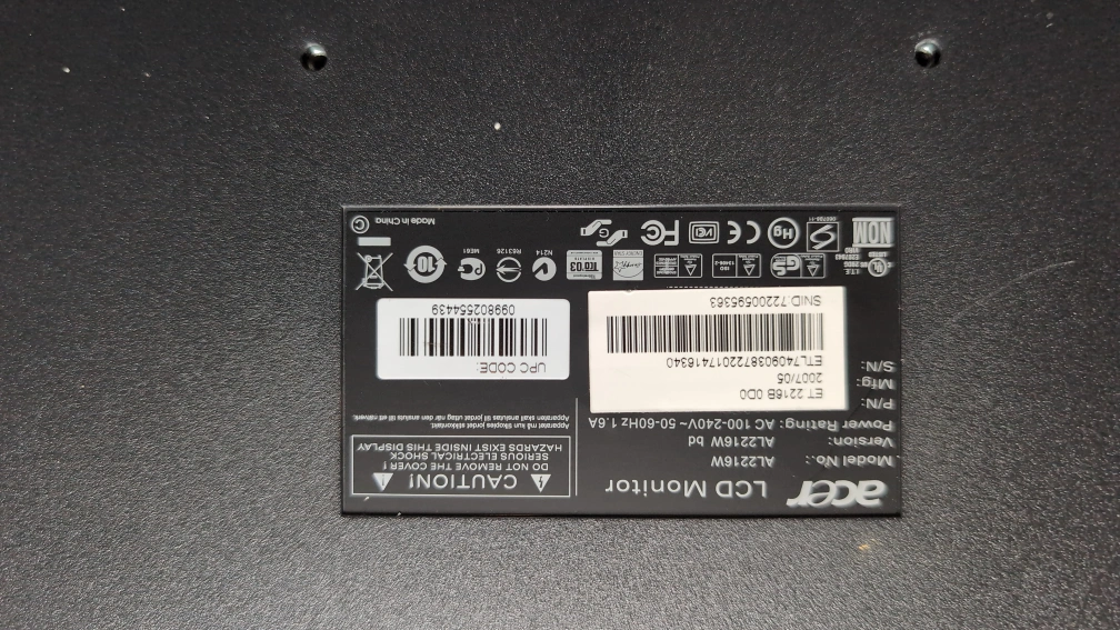 Selling an Acer LCD monitor, model AL2216W. It's in good condition and ready for a new home! Perfect for a home office or gaming setup. I used to mount this on an arm so not entirely sure how to put the stand back on.