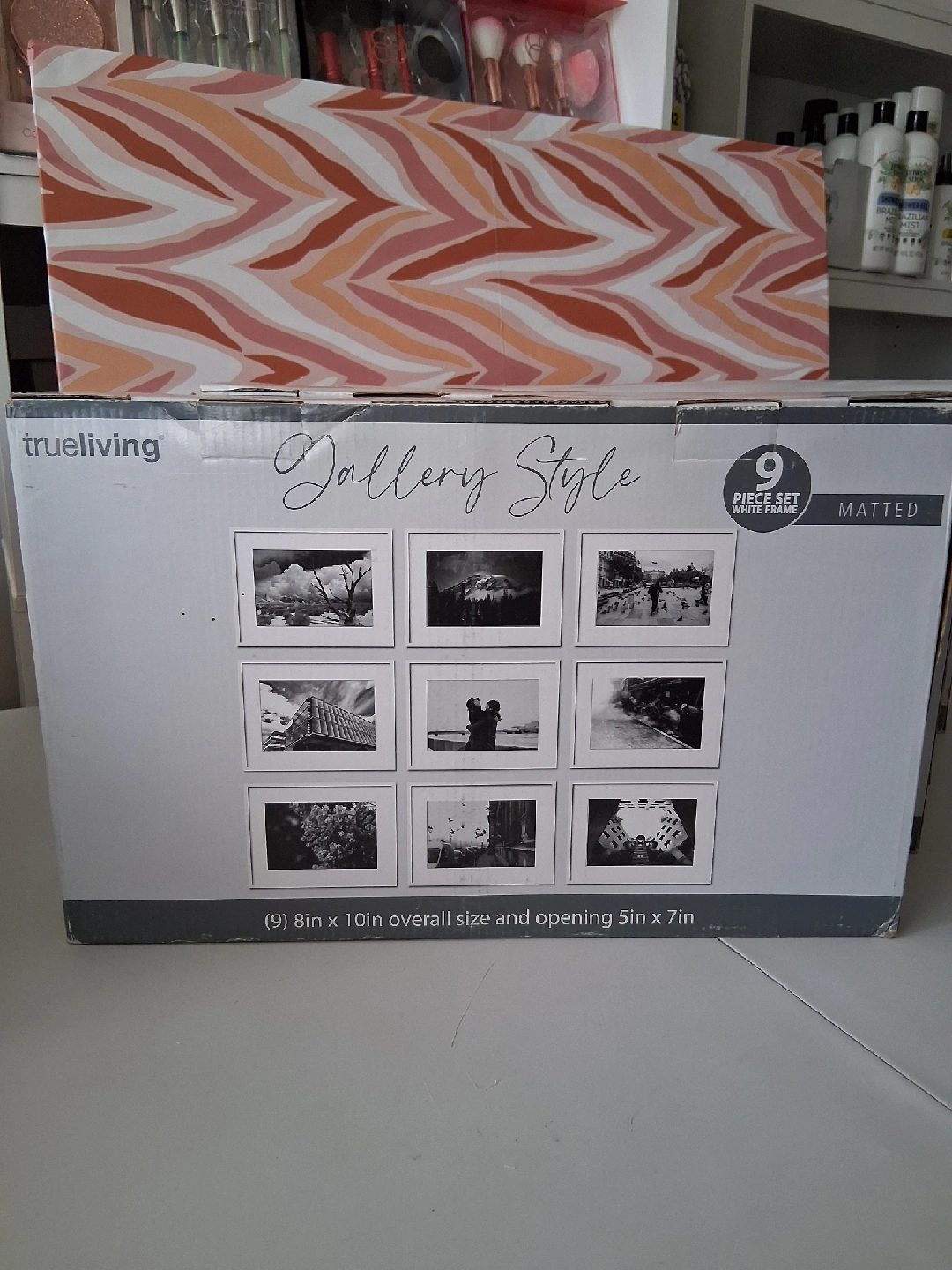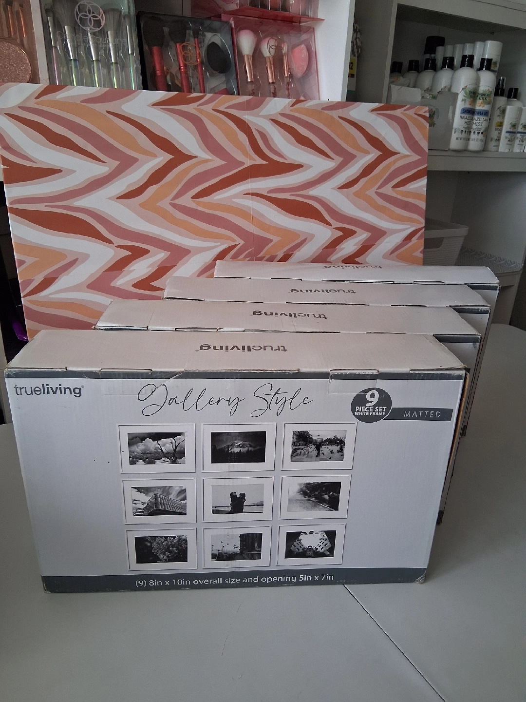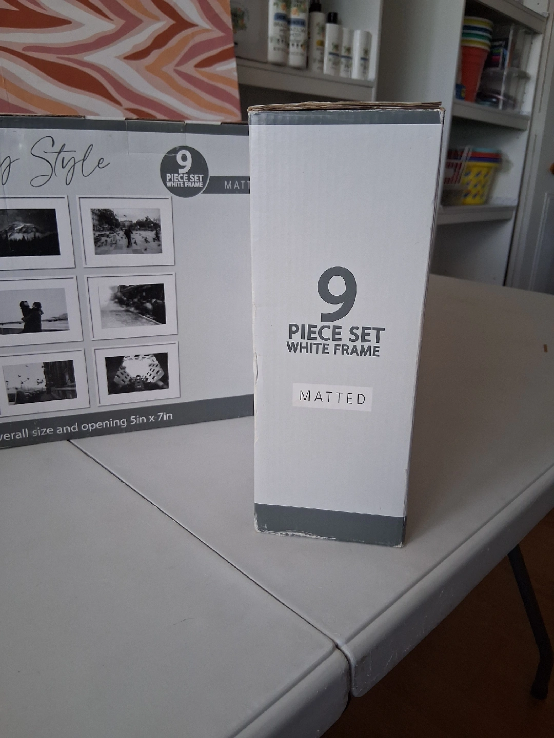 147Selling a Trueliving Gallery Style 9-piece white frame set, still in its original box! Each frame is matted and designed to hold your cherished memories. The overall size is 8in x 10in, with an opening of 5in x 7in. $20.00 ea.