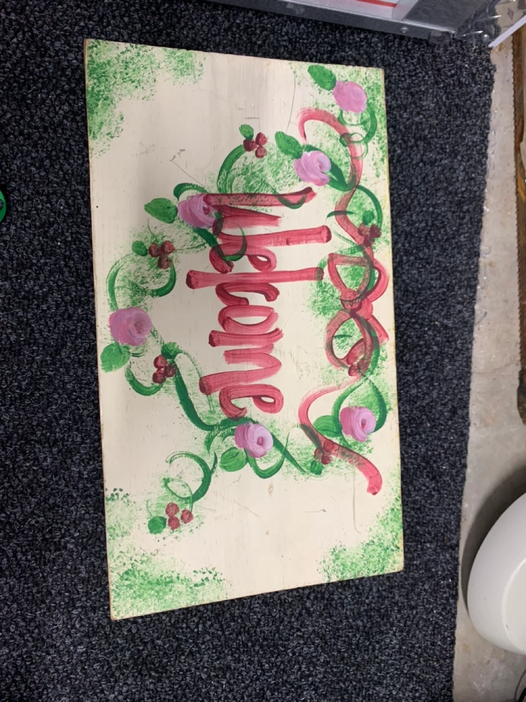 Selling a cute handmade wooden stool. It has a sweet floral design painted on the front. Perfect for adding a touch of charm to any room. Real wood.