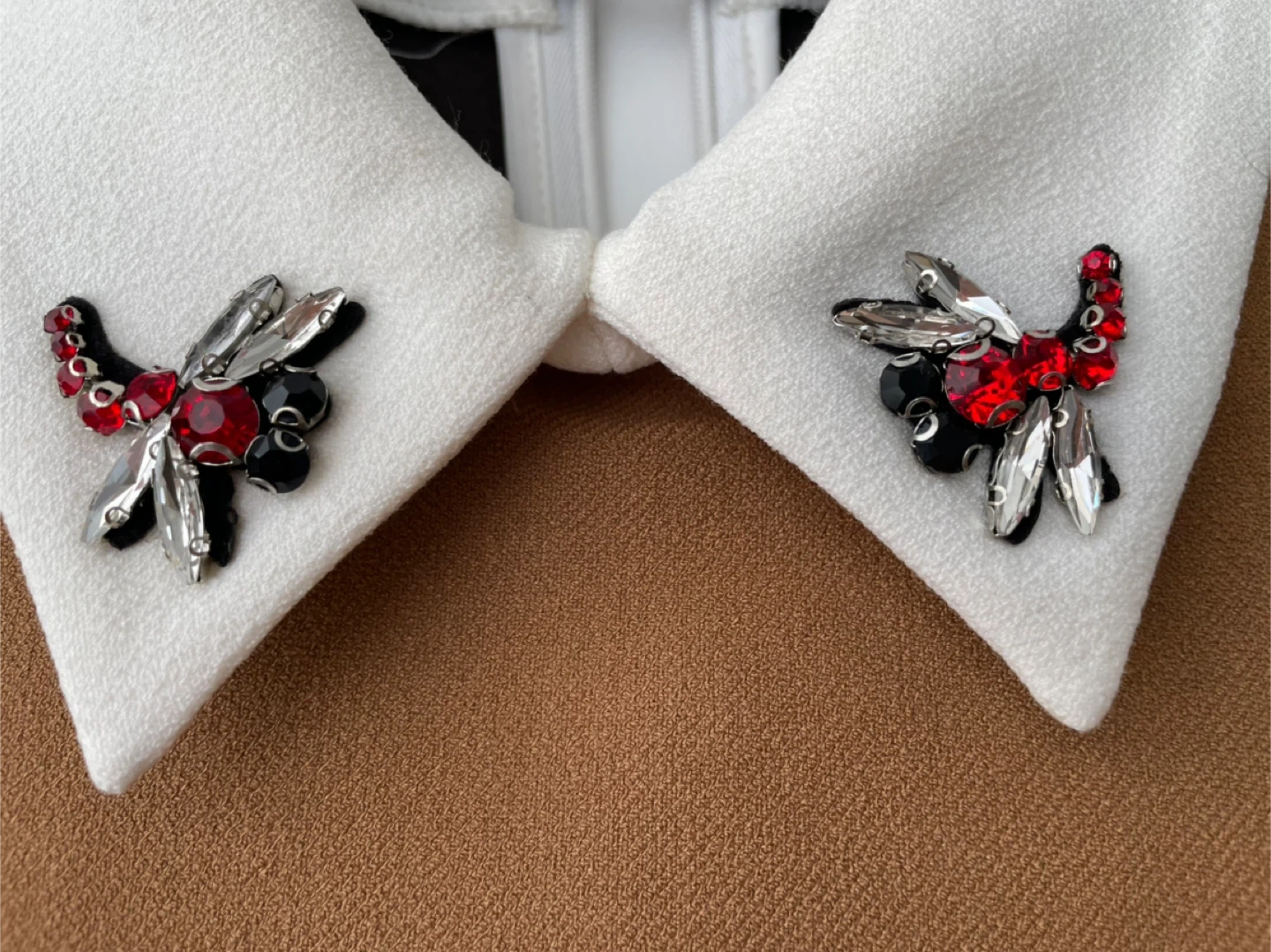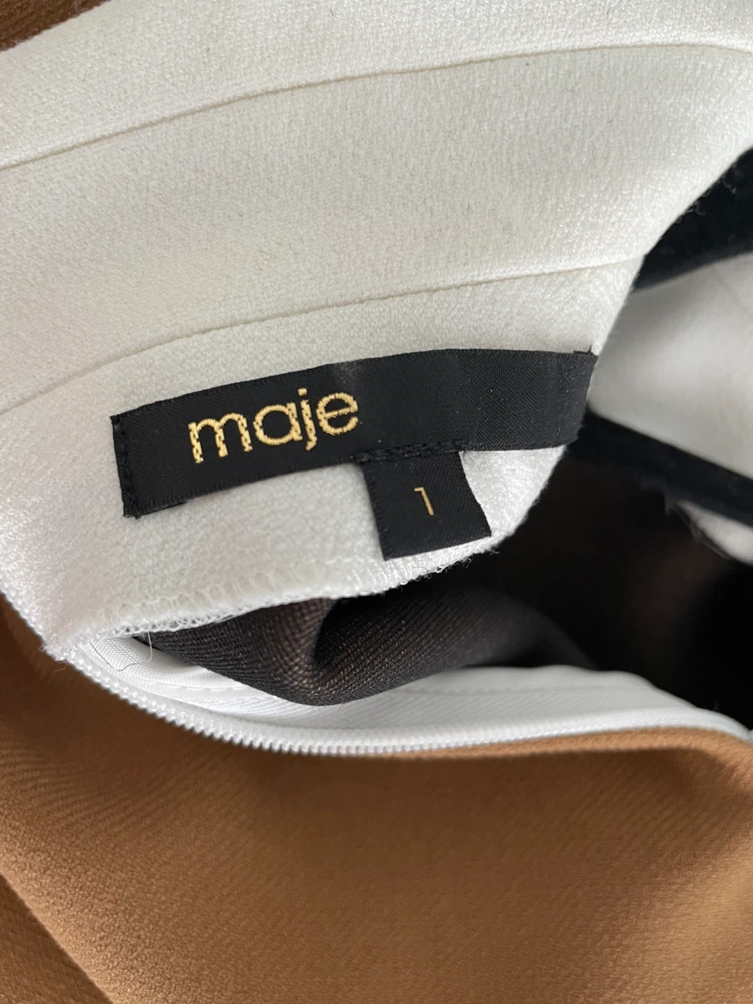 10Maje dress in a lovely brown color. It features a unique white collar with beautiful embellishments. The size is marked as 1. Like new.