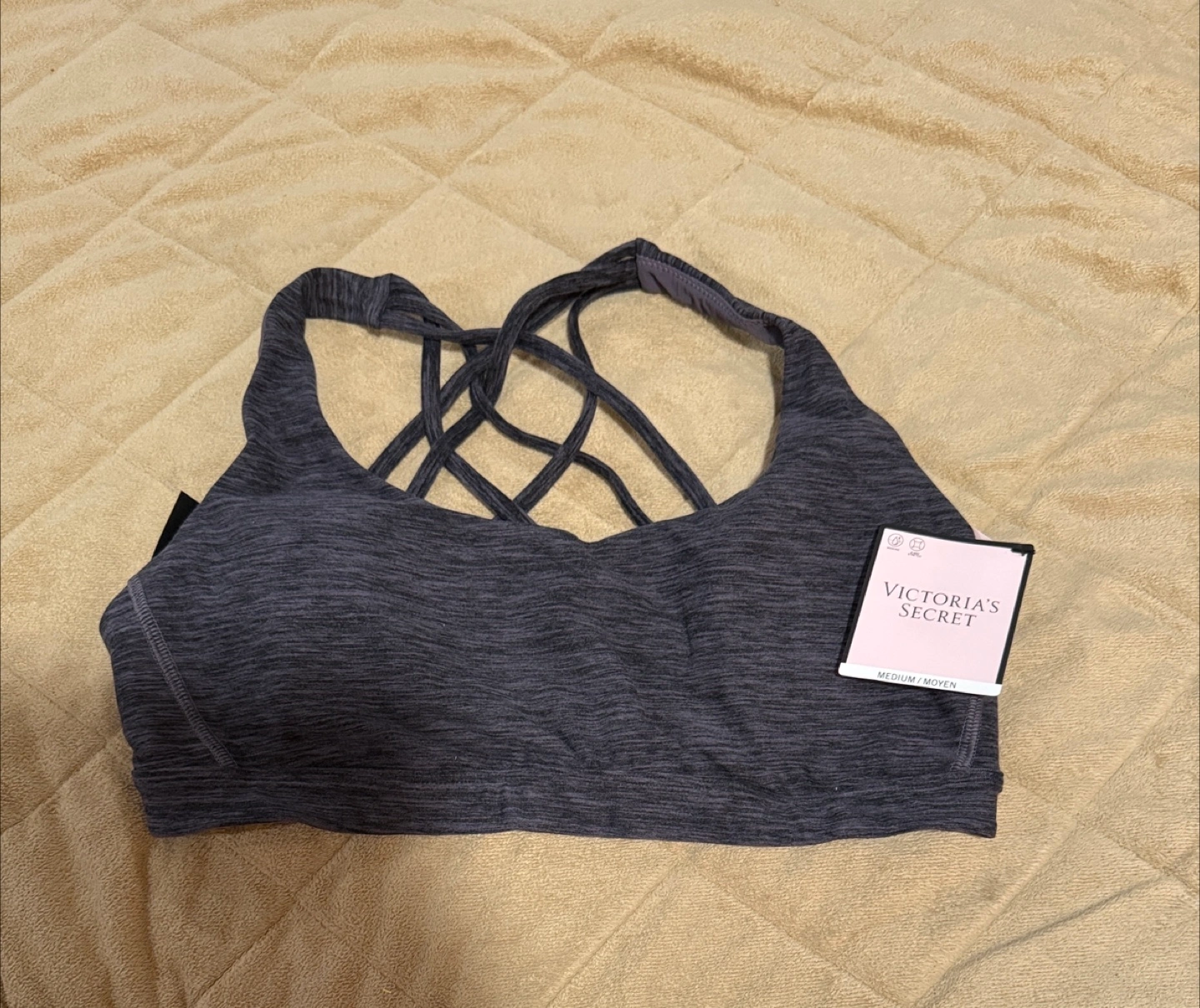 38Selling a brand new with tags Victoria's Secret sports bra! It's a size medium and features a stylish strappy back design. The material is a blend of polyester and elastane, offering a comfortable and supportive fit. Perfect for workouts or everyday wear!