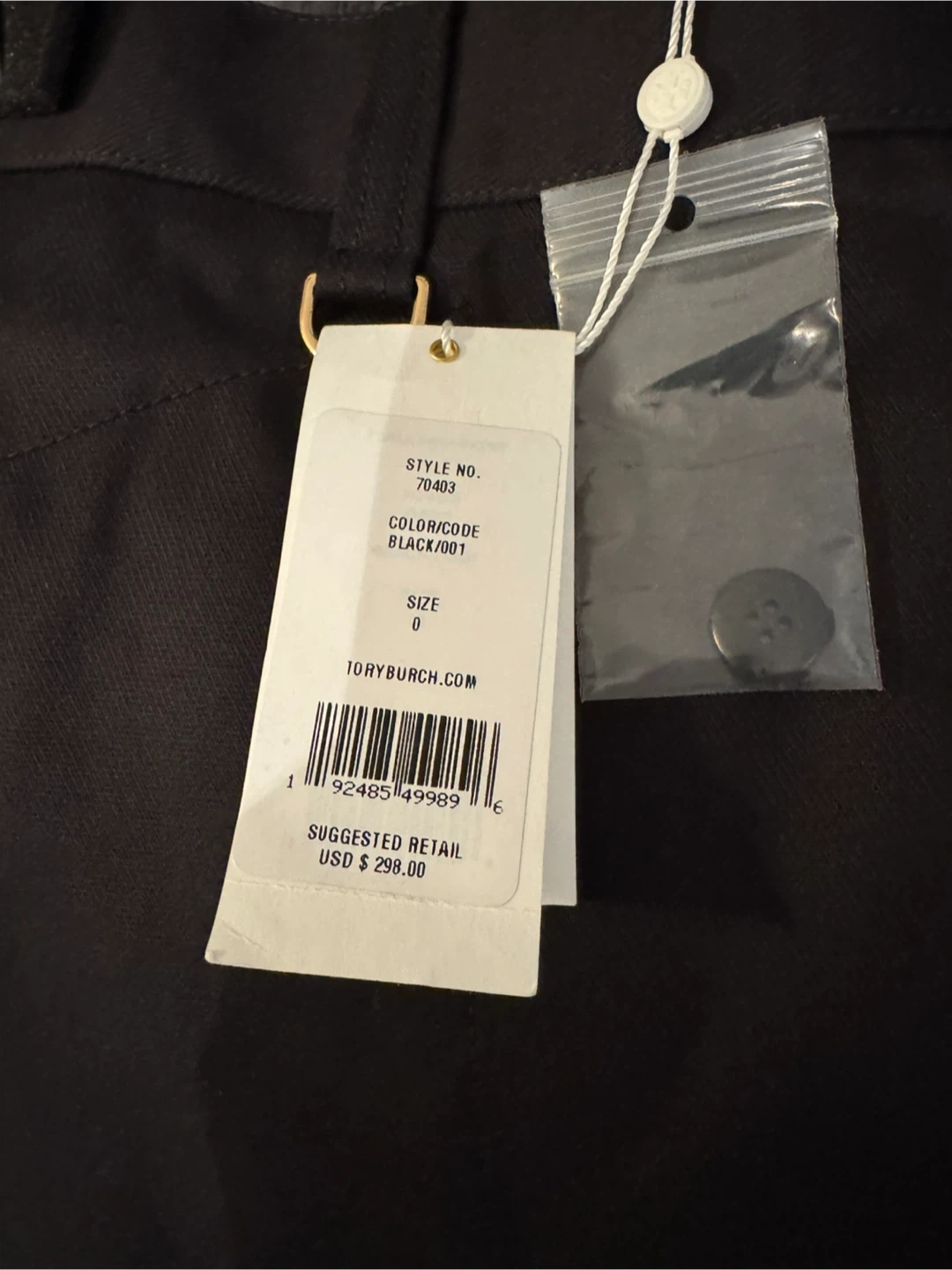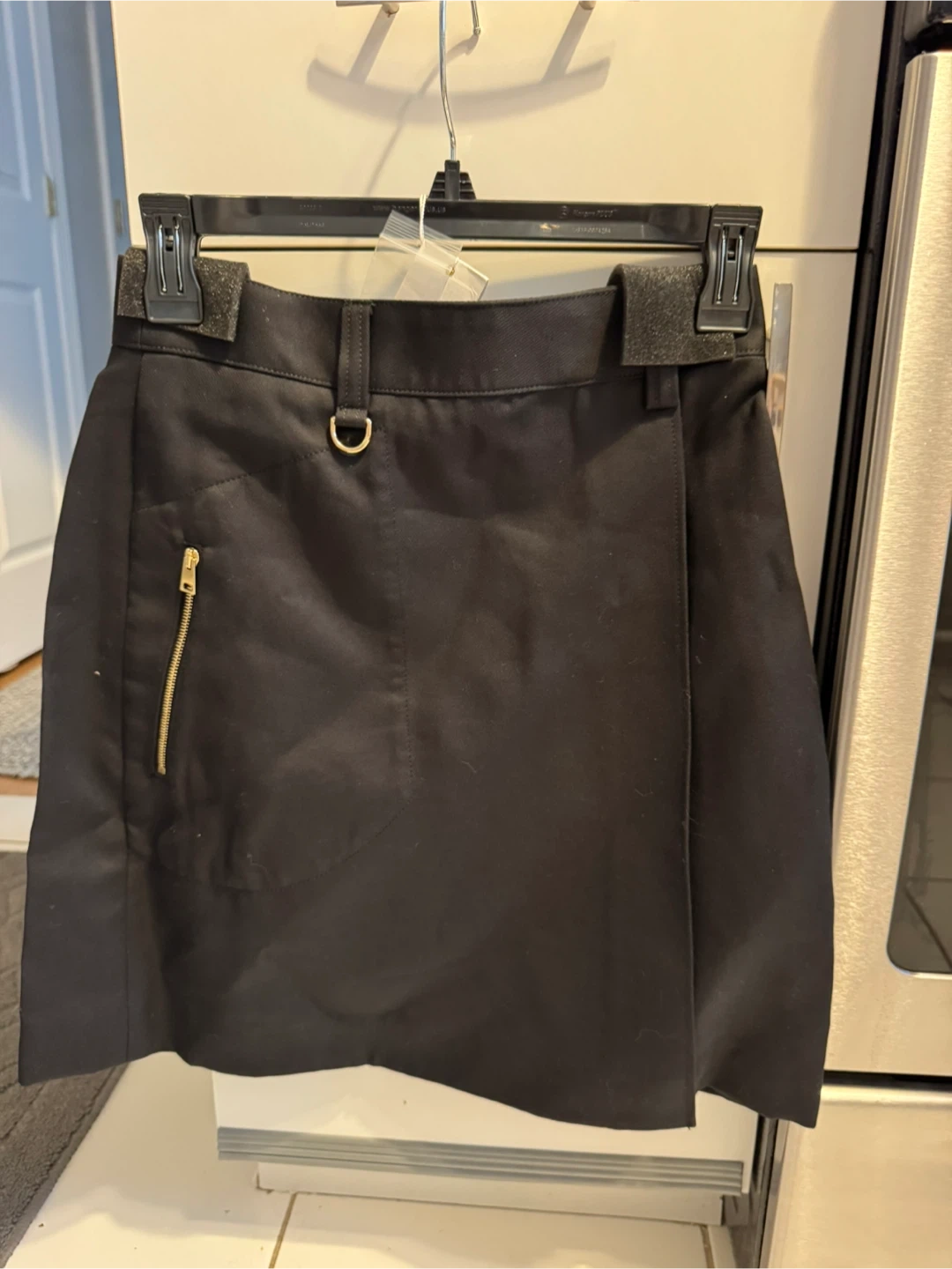 Selling a Tory Burch black skirt in size 0. It's in great condition and features a stylish design with a gold zipper accent. The suggested retail price was $298