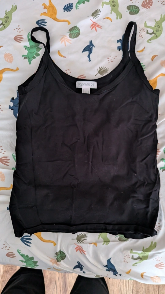Here's a cute black tank top from Forever 21! It's perfect for layering or wearing on its own. The material is soft and comfortable, great for everyday wear!