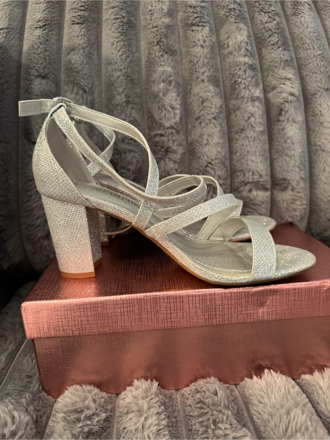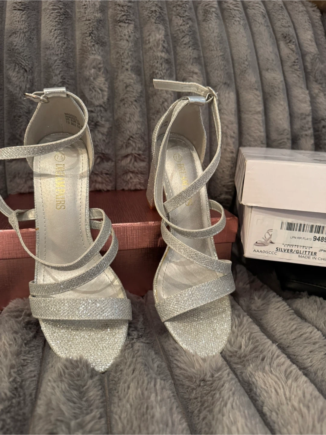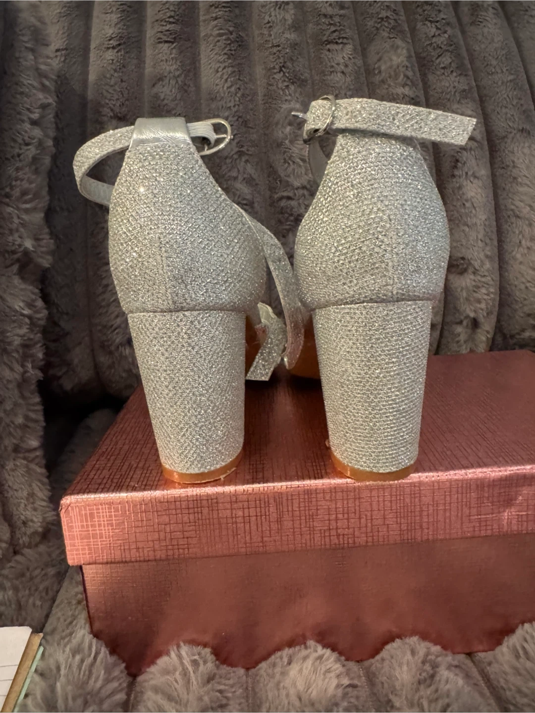 These Dream Pairs heels are perfect for adding a touch of sparkle to any outfit! They are in great condition and come with the original box. The color is a beautiful glitter silver, and the size is US 7 worn once